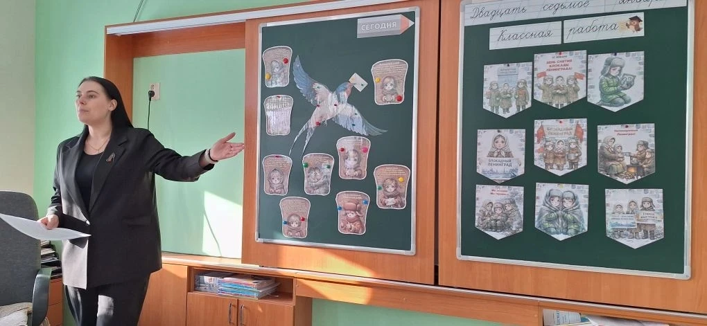 Ребята погрузились в историю блокады, посмотрев презентацию, которая напомнила о невыносимых испытаниях, выпавших на долю жителей великого города. Мы слушали пронзительные стихи Ольги Берггольц — поэтессы, чей голос стал символом стойкости и мужества осажденного Ленинграда.