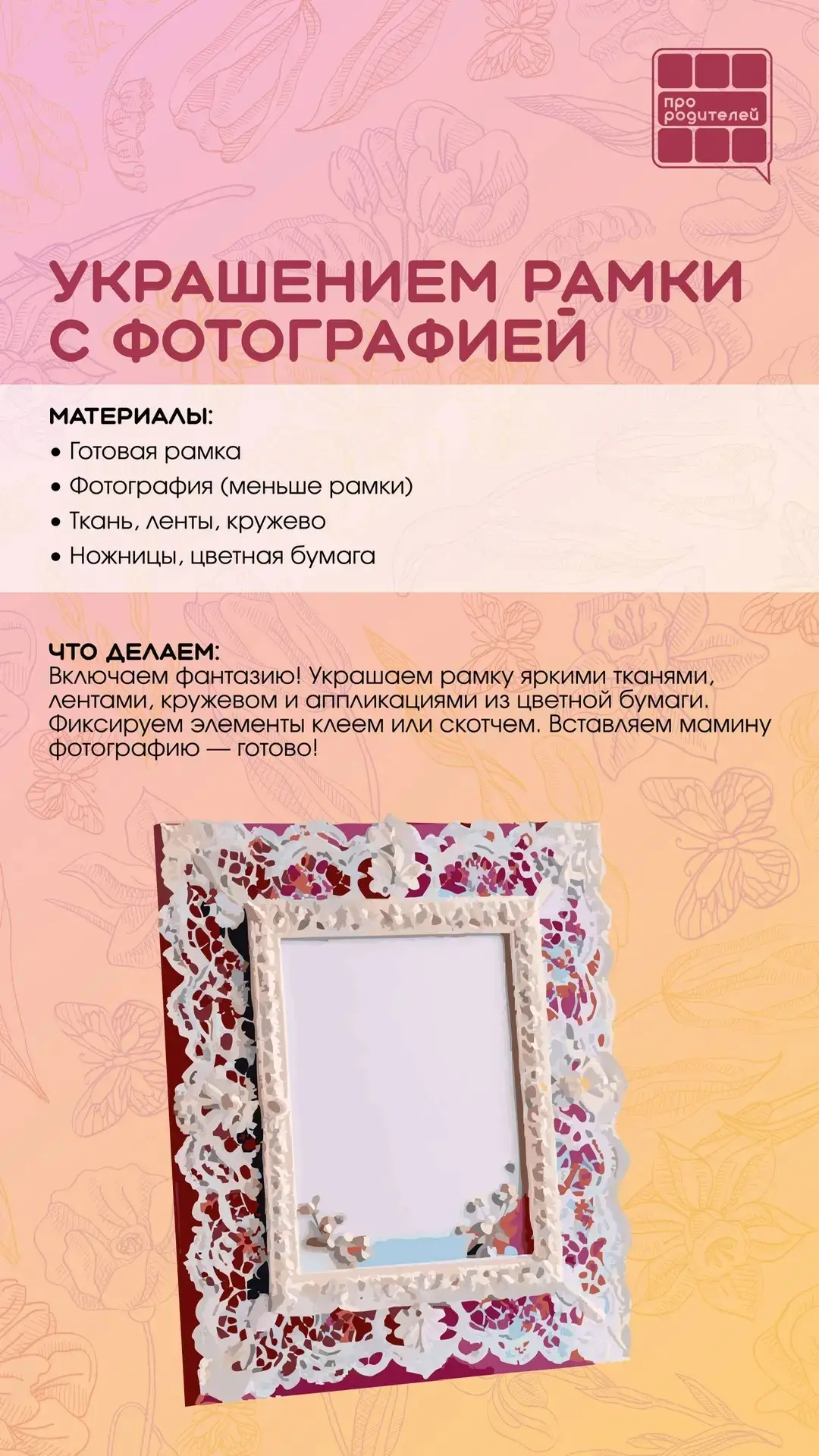 🎁 Мы подготовили 6 проверенных идей подарков — от рамочек до браслетов. Всё просто, а главное — дети будут в восторге от совместного процесса!