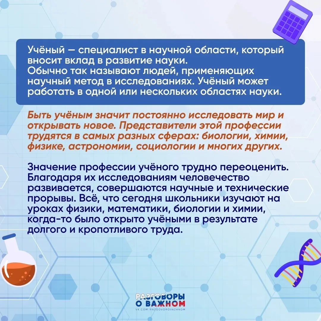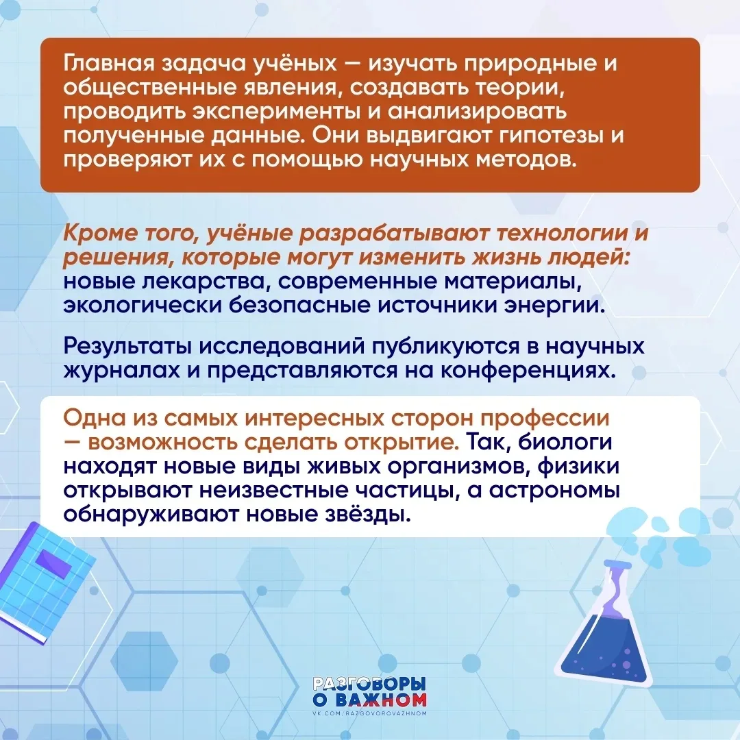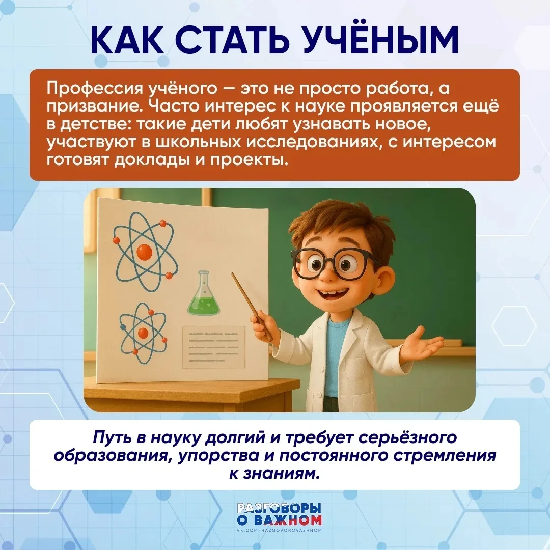 Наука — это сила, дающая прогресс, движение, развитие во всех сферах жизни! 🔬Медицина, образование 📚, экономика 📈, производства 🏭 — везде наука открывает новые горизонты. Открытия учёных выводят человечество на новый уровень, повышая качество жизни. ✨