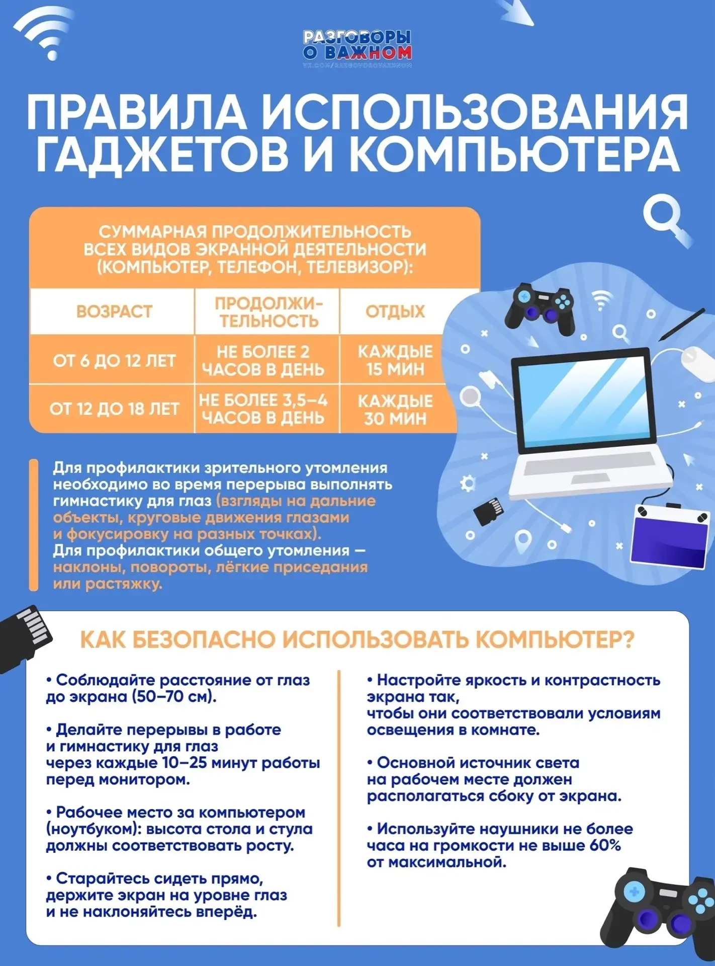 Чтобы уменьшить вред, важно соблюдать несколько простых правил, которые помогут сохранить здоровье глаз и осанку — рассказываем в памятке
