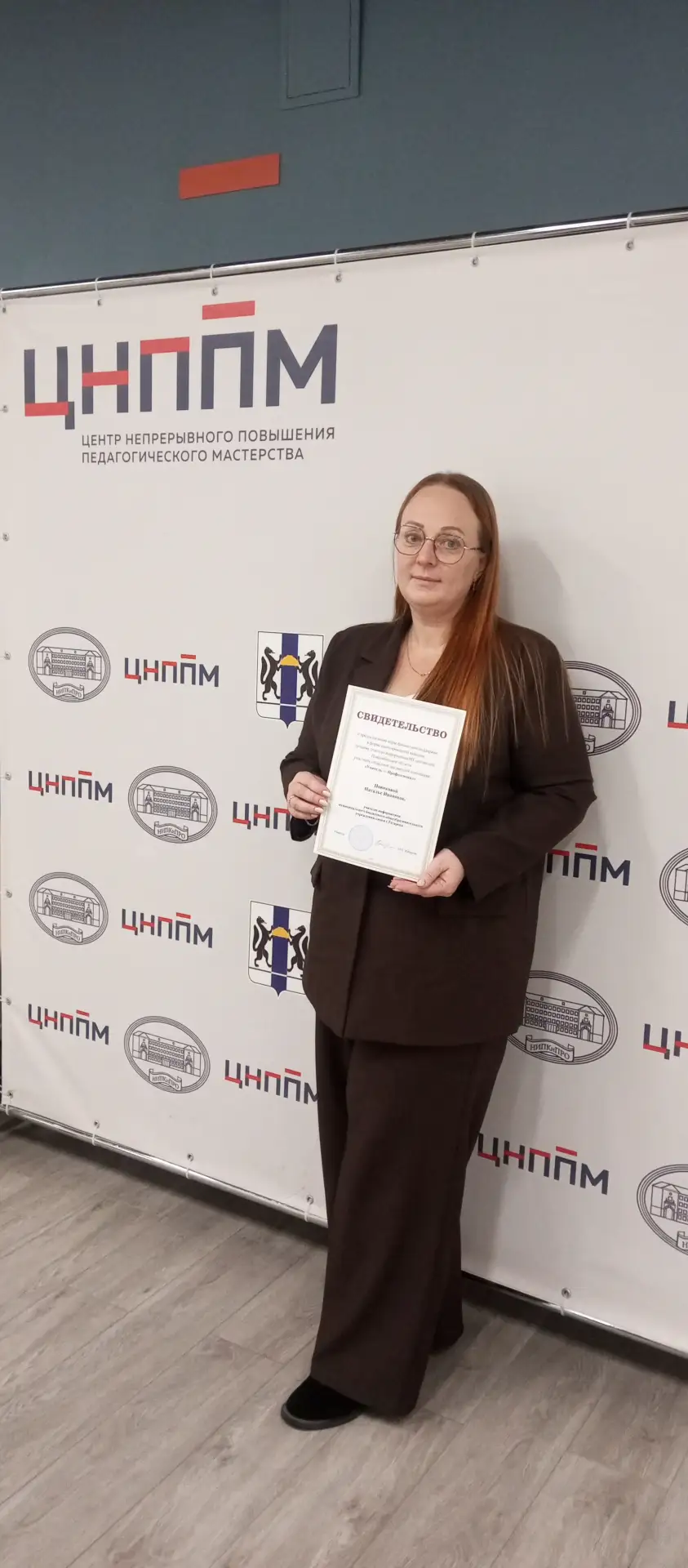 На торжественной церемонии Наталья Ивановна получила свидетельство о поощрении и материальную поддержку от Правительства Новосибирской области! Это стало возможным благодаря участию и победе в Областной предметной олимпиаде «Учитель – Профессионал».