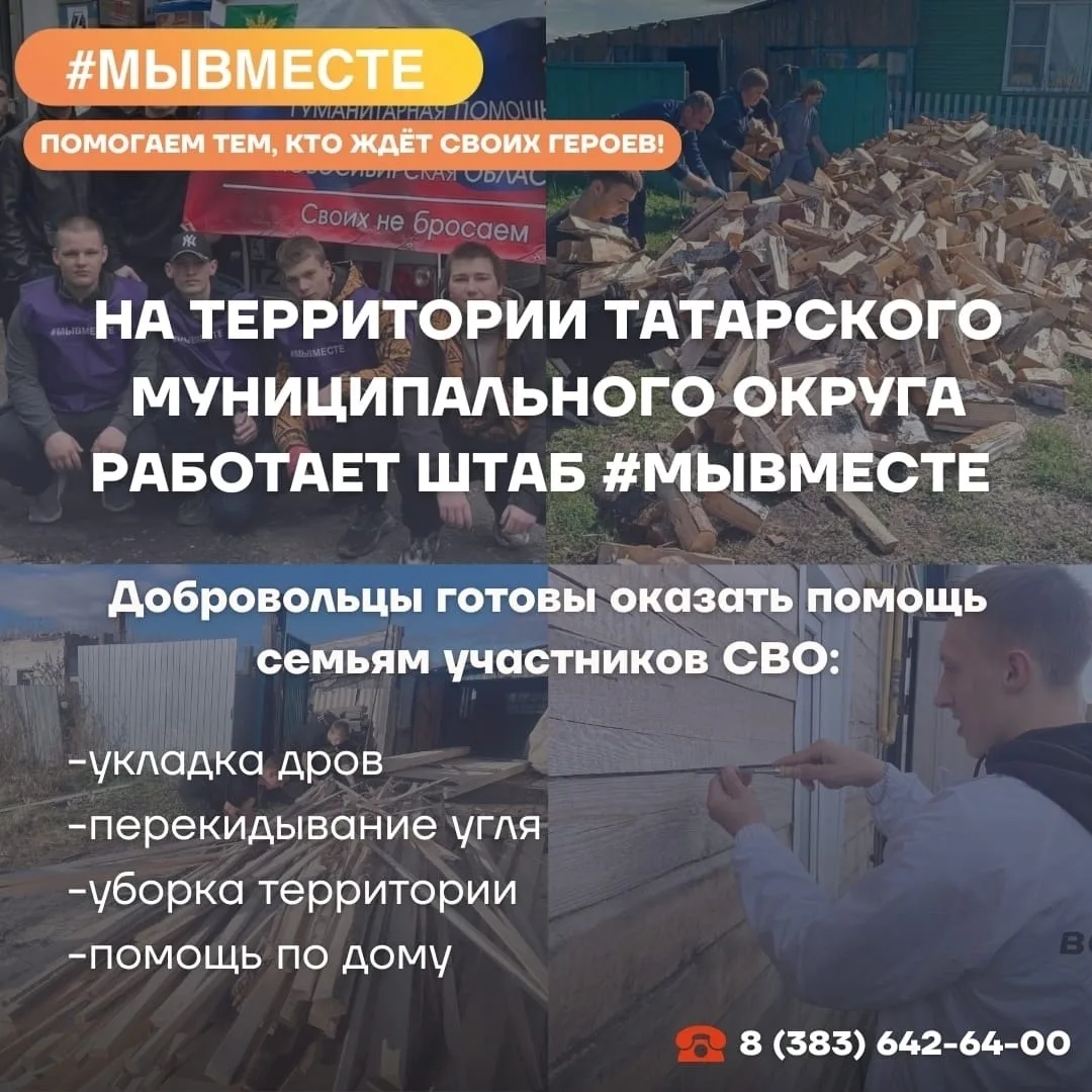 Волонтёры штаба #МЫВМЕСТЕ Татарского муниципального округа продолжают оказывать всестороннюю поддержку семьям наших военнослужащих, участвующих в специальной военной операции.