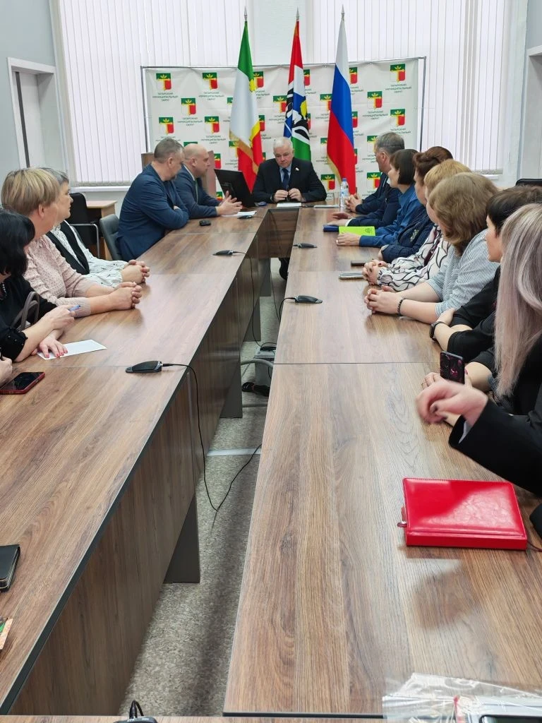 На встрече присутствовали: Глава Татарского муниципального округа Ю.М. Вязов, первый заместитель главы администрации Татарского муниципального округа Ю.П.Лысенко, специалисты администрации, руководители социальных служб и представители Ассоциации ветеранов СВО.