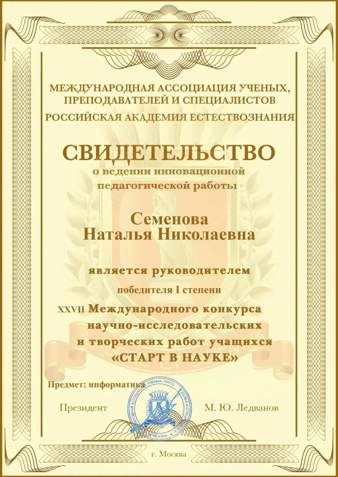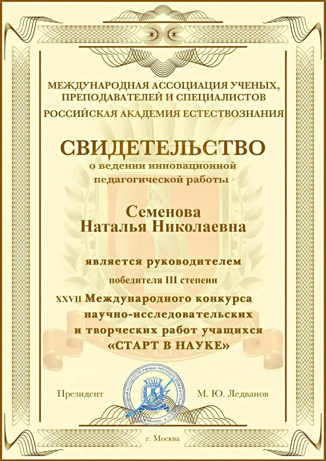 Международный конкурс «Старт в науку» проводится Международной ассоциацией учёных, преподавателей и специалистов Российской Академии Естествознания уже в 27-й раз. Его главные цели — развитие культуры проектной и исследовательской деятельности, выявление интеллектуального потенциала учащихся и создание условий для их самореализации.