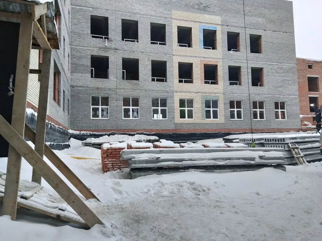 В ходе поездки посетили строительную площадку здания новой школы. Представитель строительной компании доложил о выполненных и текущих работах: