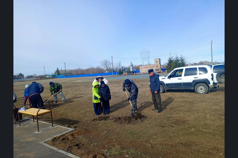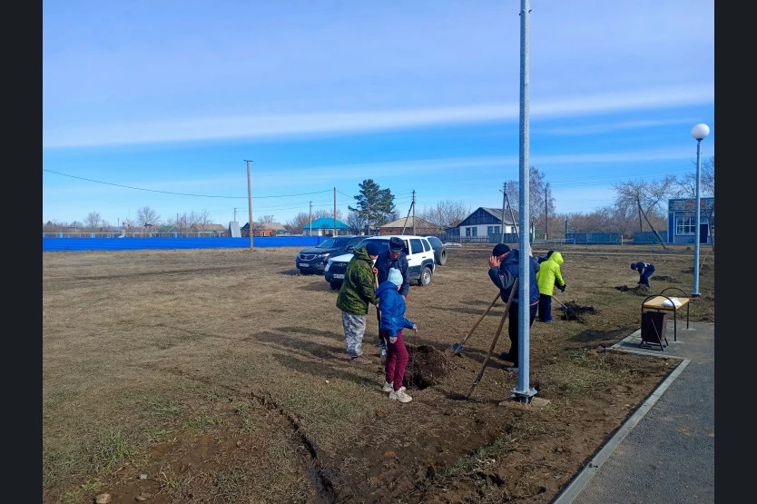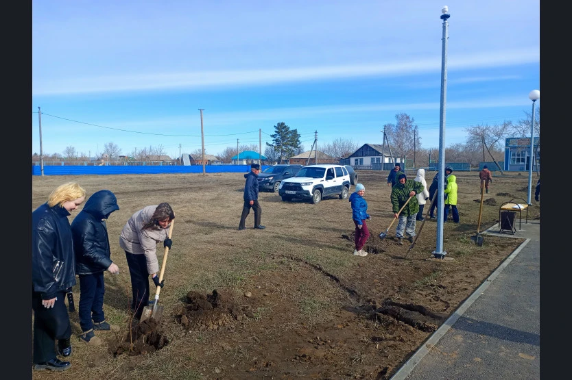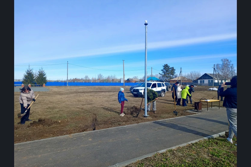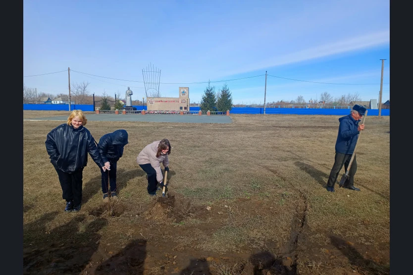 🧹На прошлой неделе в целях благоустройства территории на центральной площади села Хорошее возле мемориала состоялась акция «Сад памяти».