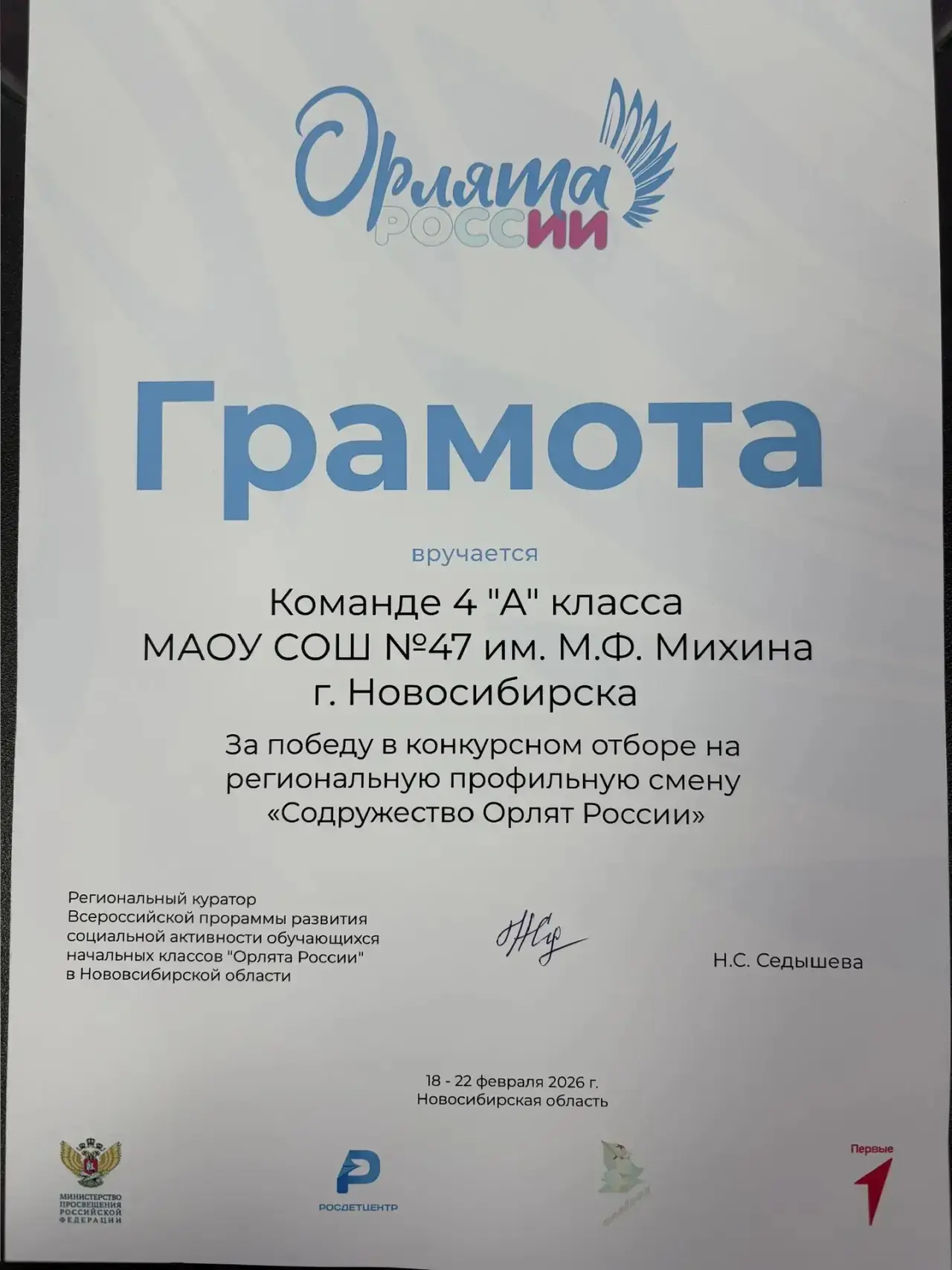 Наши Орлята 4а класса завершили своё победное участие в региональной смене «Содружество Орлят России». 👏