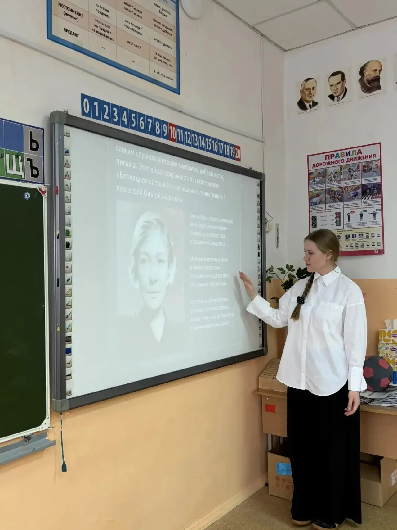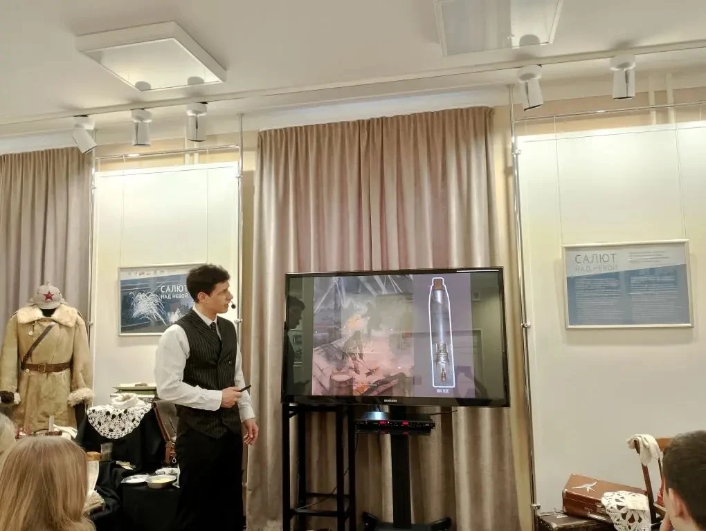 Учащиеся 5б представляют стихотворение «Ленинградский салют». 🎇