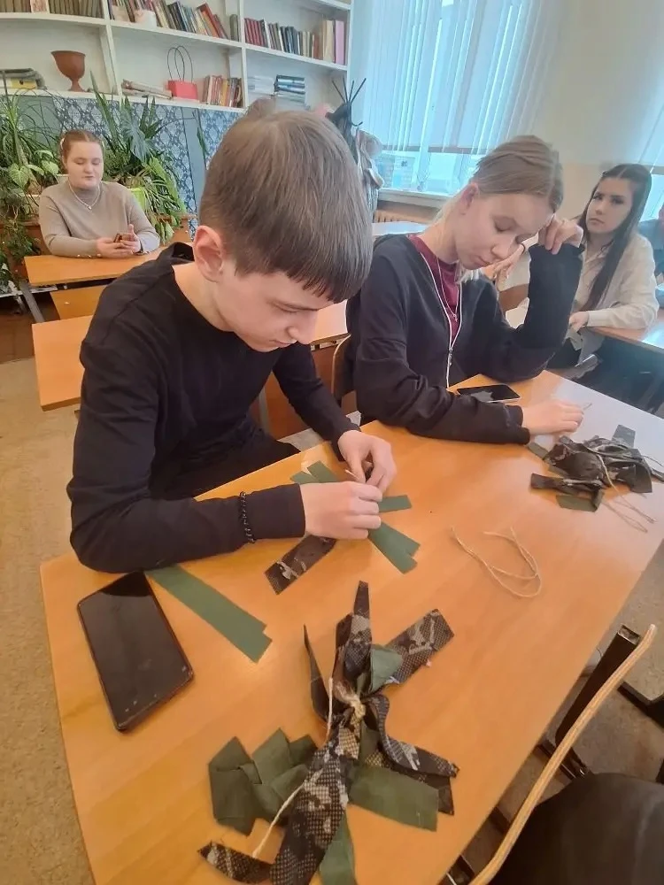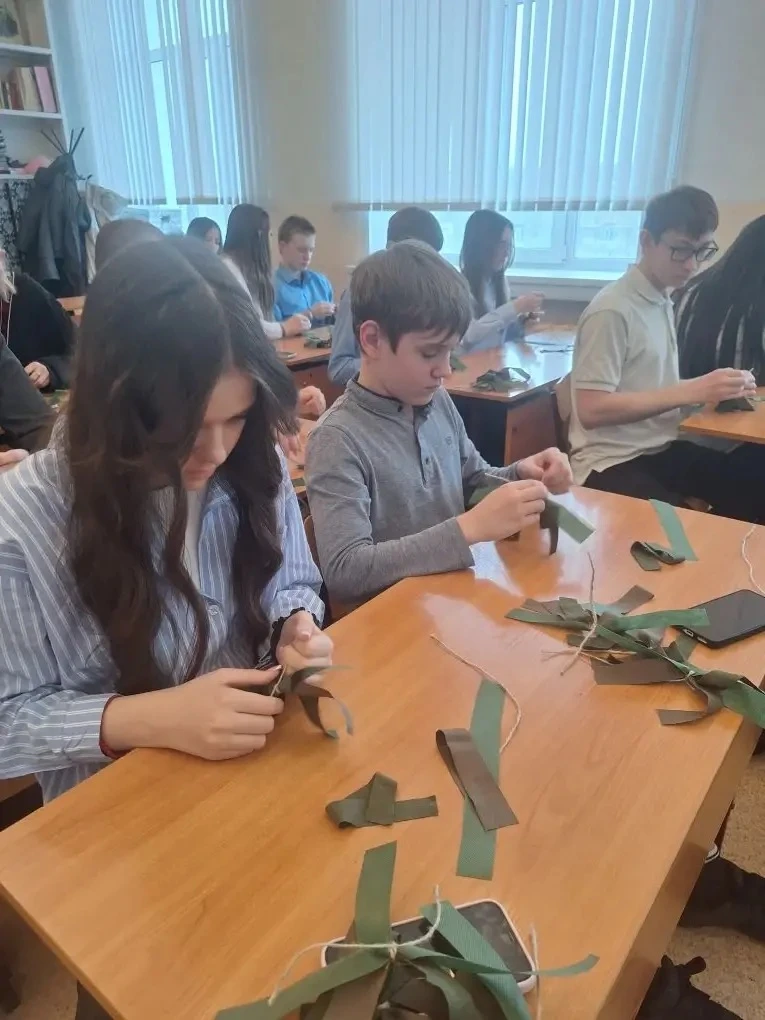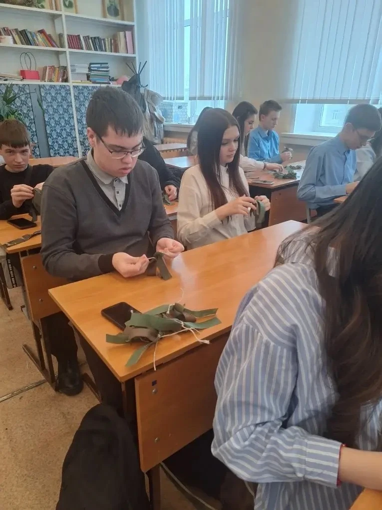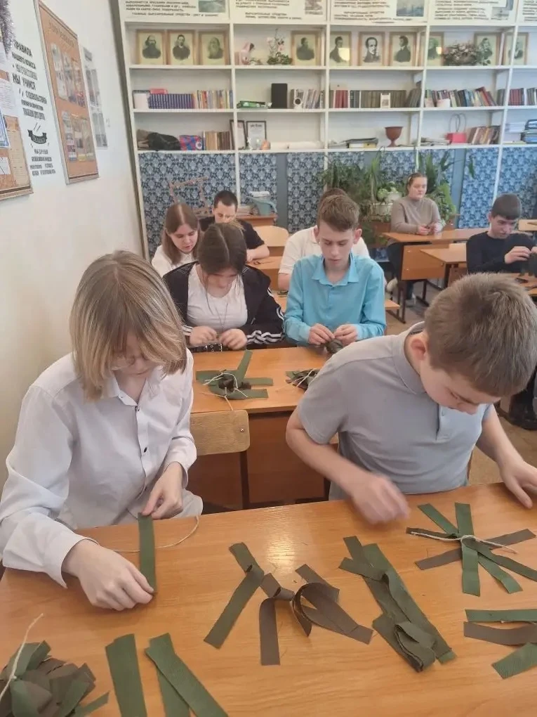 📌 Ребята не только познакомились с платформой Добро ру, но и зарегистрировались там. За плетение «паучков» для маскировочных сетей восьмиклассники получили свои первые волонтерские часы.