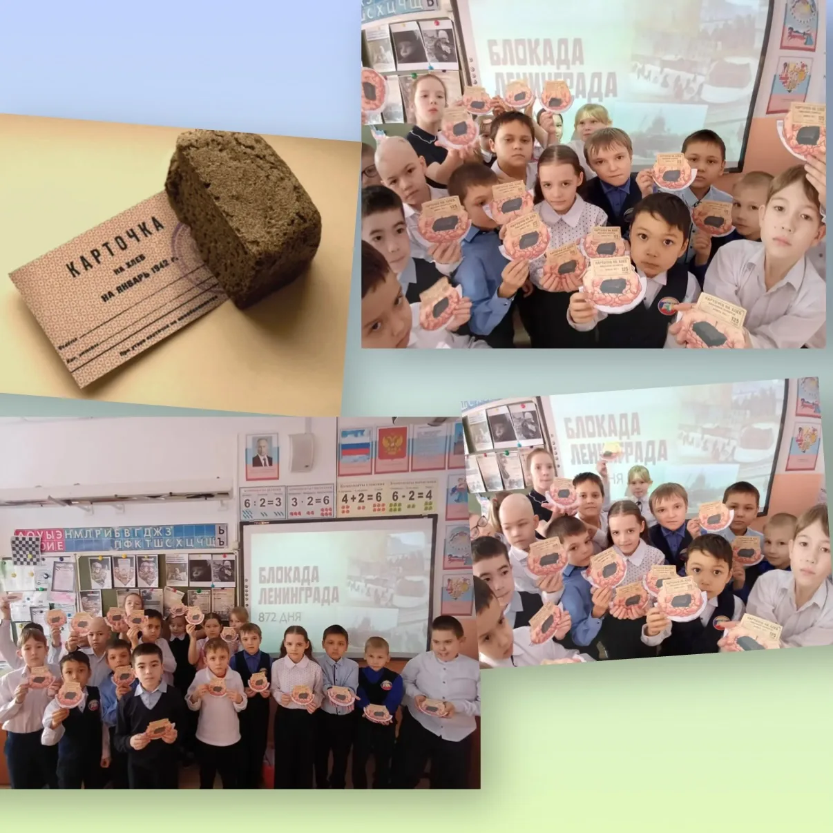 Акции «Блокадный хлеб» и «Блокадная ласточка» в 3а, 2в, 2б, 3б классах, посвященные 82-ой годовщине снятия блокады Ленинграда. 🎇