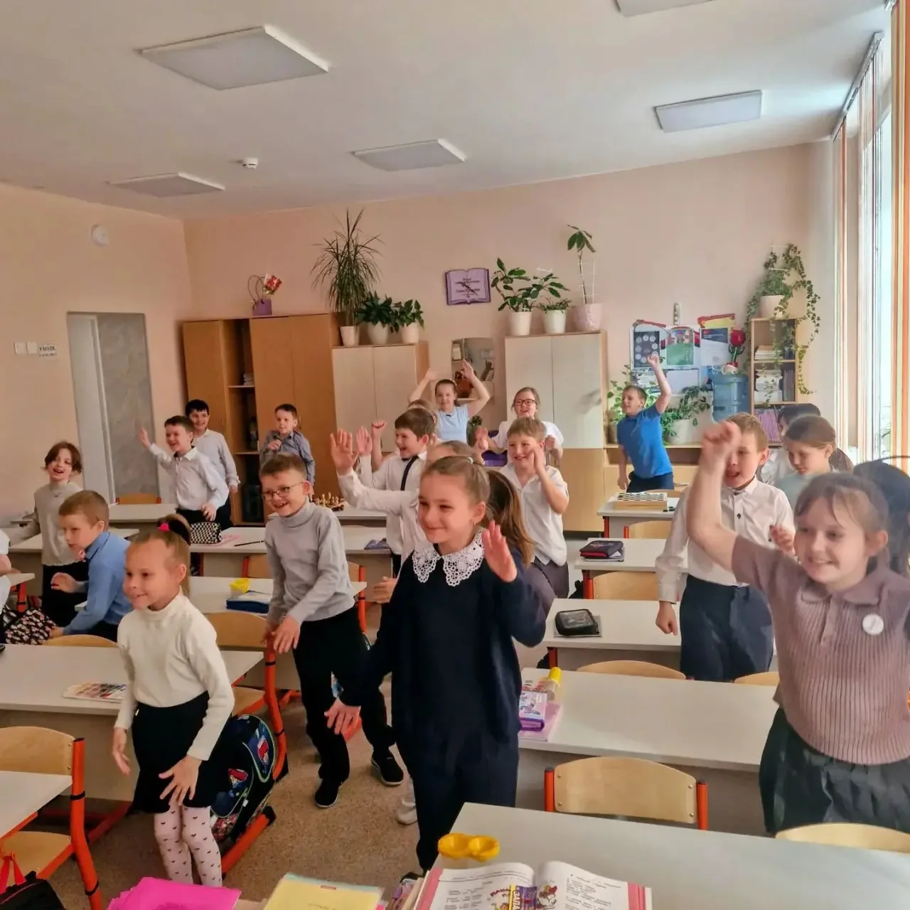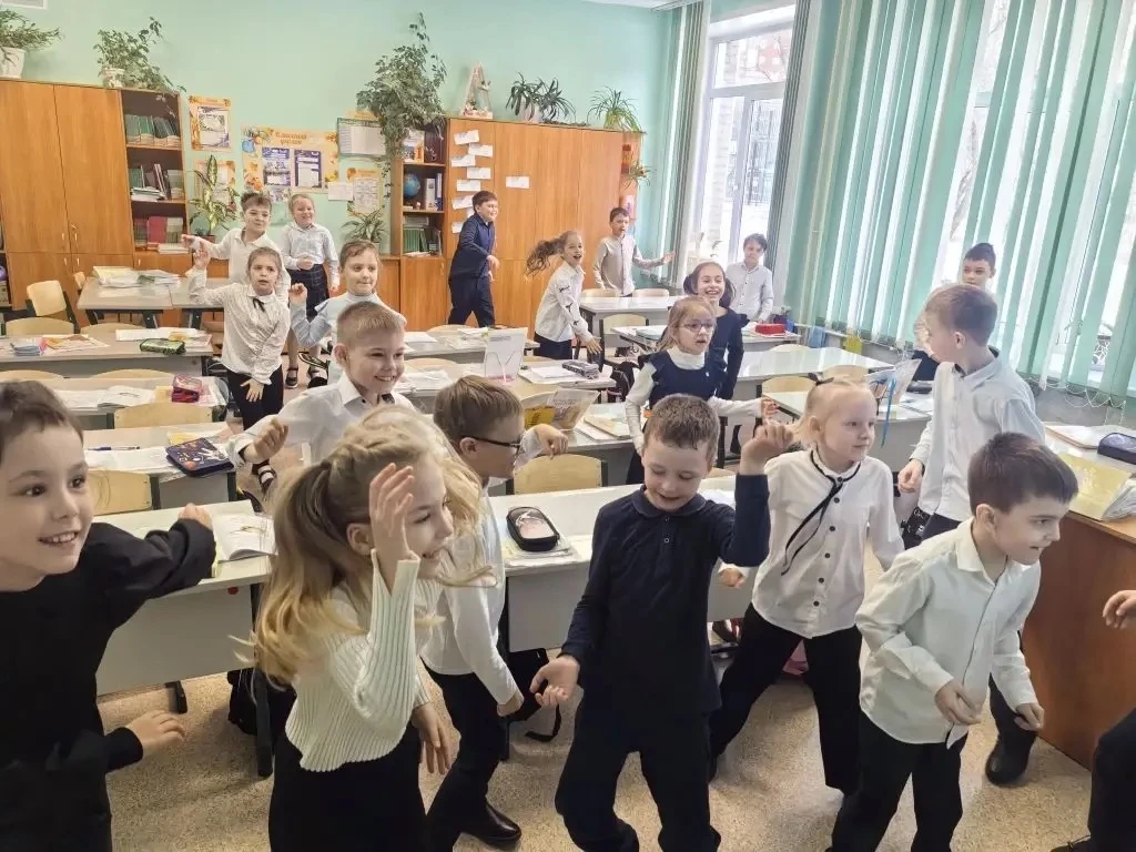 Ученики 1–4 классов с удовольствием выполняли специальные упражнения, которые заряжают энергией и укрепляют здоровье. Ритмичная музыка, яркие улыбки и хороший настрой сделали наш день незабываемым!