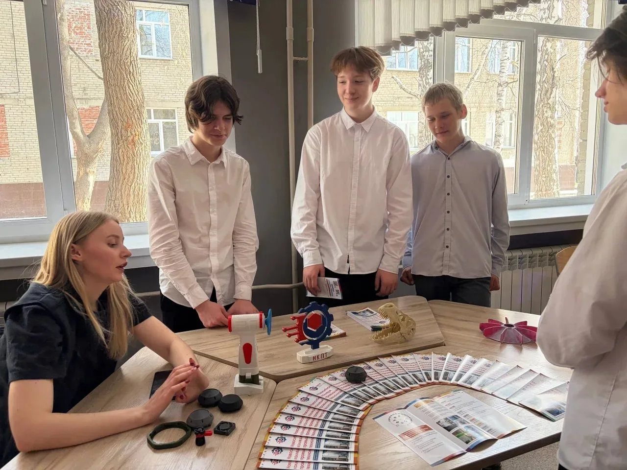 Гости не просто рассказали о своих обучающих программах и бурной студенческой жизни, но и привезли с собой «тяжёлую артиллерию» — настоящие переносные станки и 3D-сканеры!