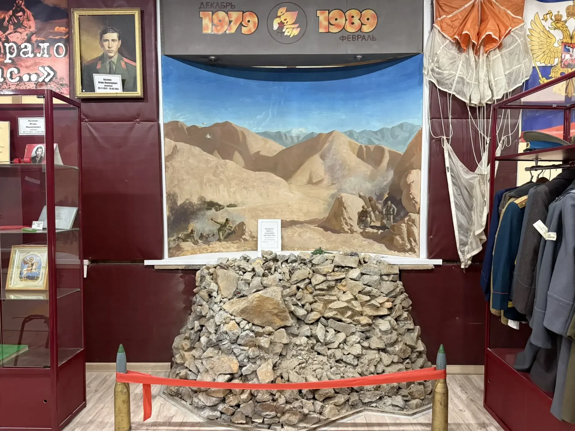 В нашей школе есть музей, посвящённый воинам-интернационалистам. В нём находится диорама, которая пострадала во время недавнего капитального ремонта.