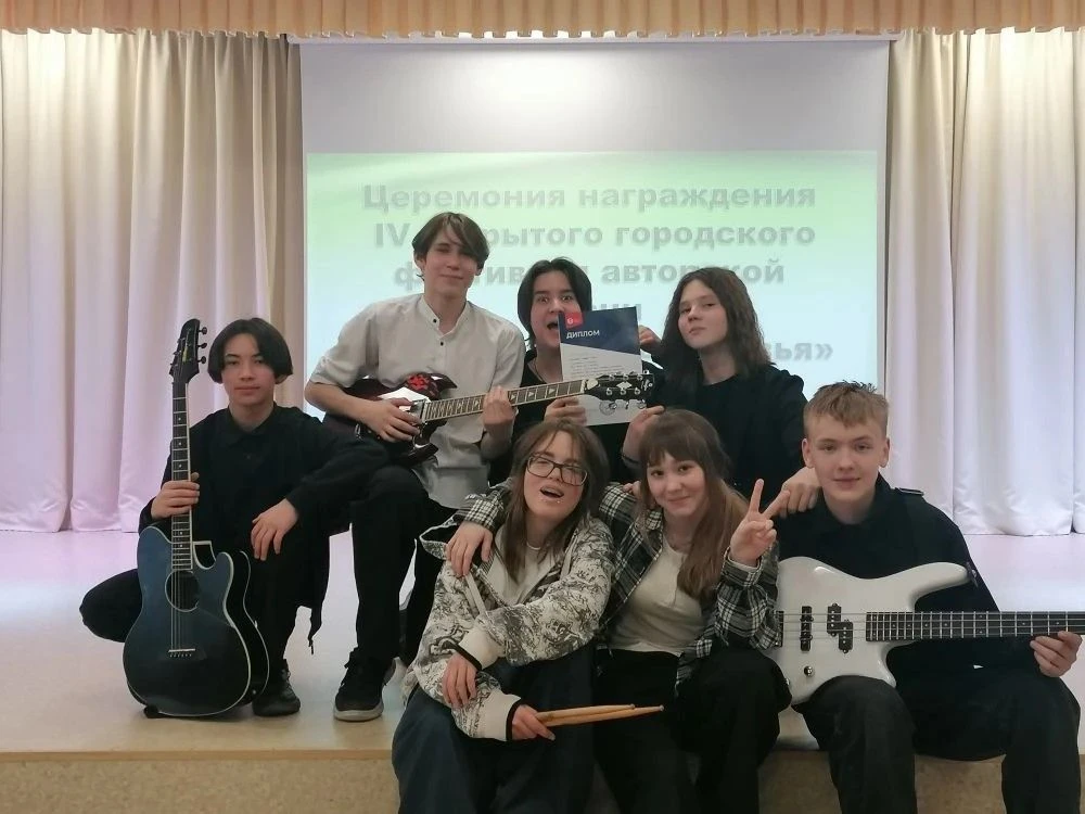 Наши музыканты продолжают покорять городские сцены! Музыкальная группа учеников 7–8 классов «Рейс 360» достойно представила нашу школу на IV Открытом городском фестивале бардовской песни «Наш дом там, где друзья». ✨