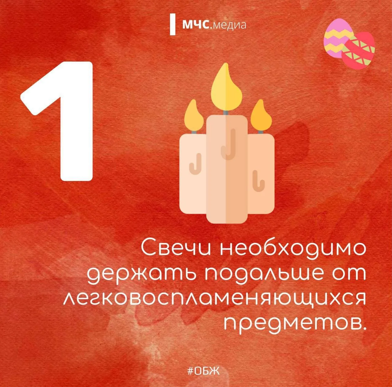 🕯Для миллионов людей праздник Светлой Пасхи – одно из самых важных и трогательных событий года. В этот день мы стремимся создать особую атмосферу тепла и веры, но важно помнить: где бы вы ни находились – дома, в гостях или в храме – правила пожарной безопасности должны соблюдаться неукоснительно.