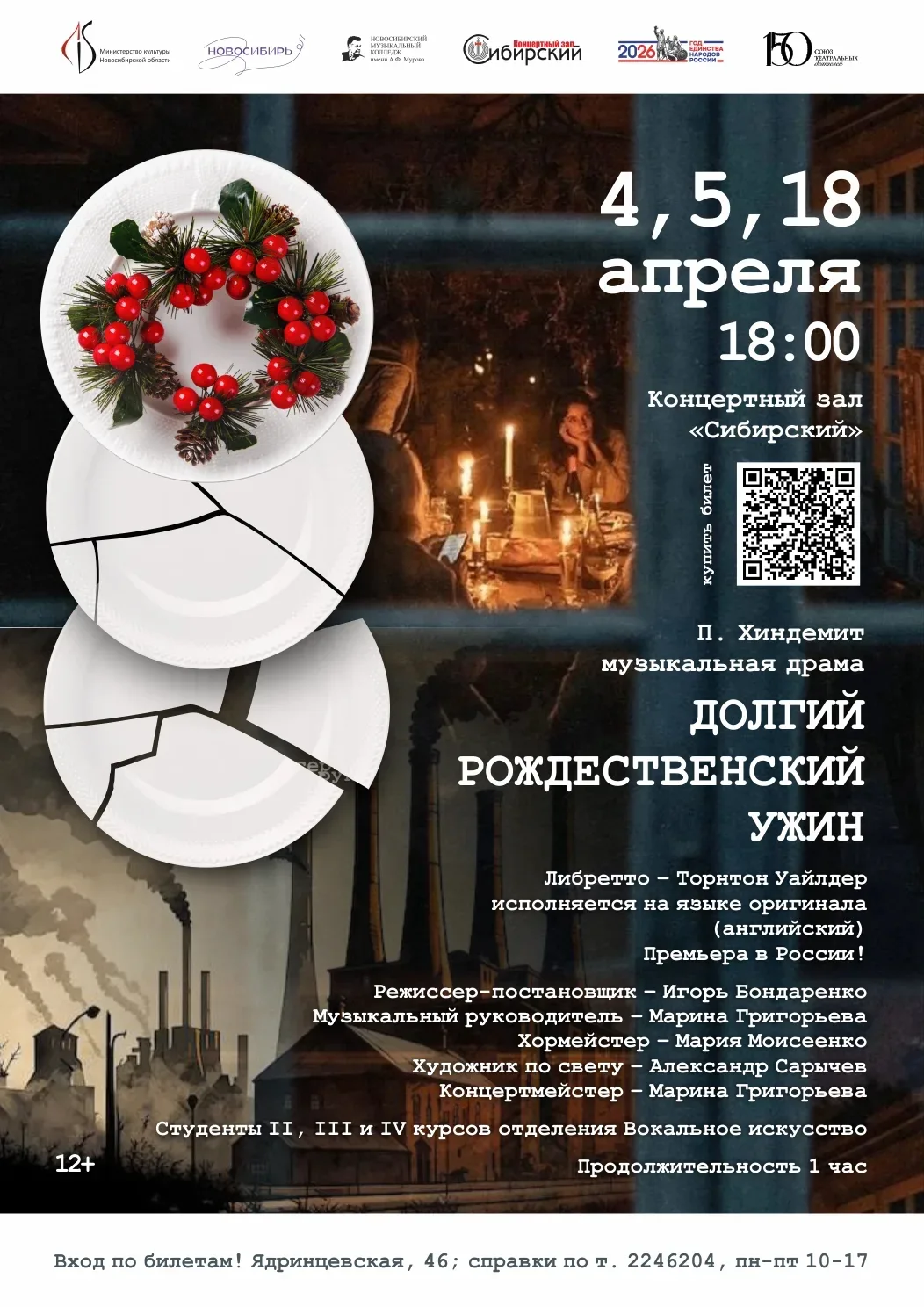 4,5,18 апреля 2026 в 18:00 в КЗ «Сибирский» – музыкальная драма П. Хиндемита «Долгий рождественский ужин» – премьера в России!