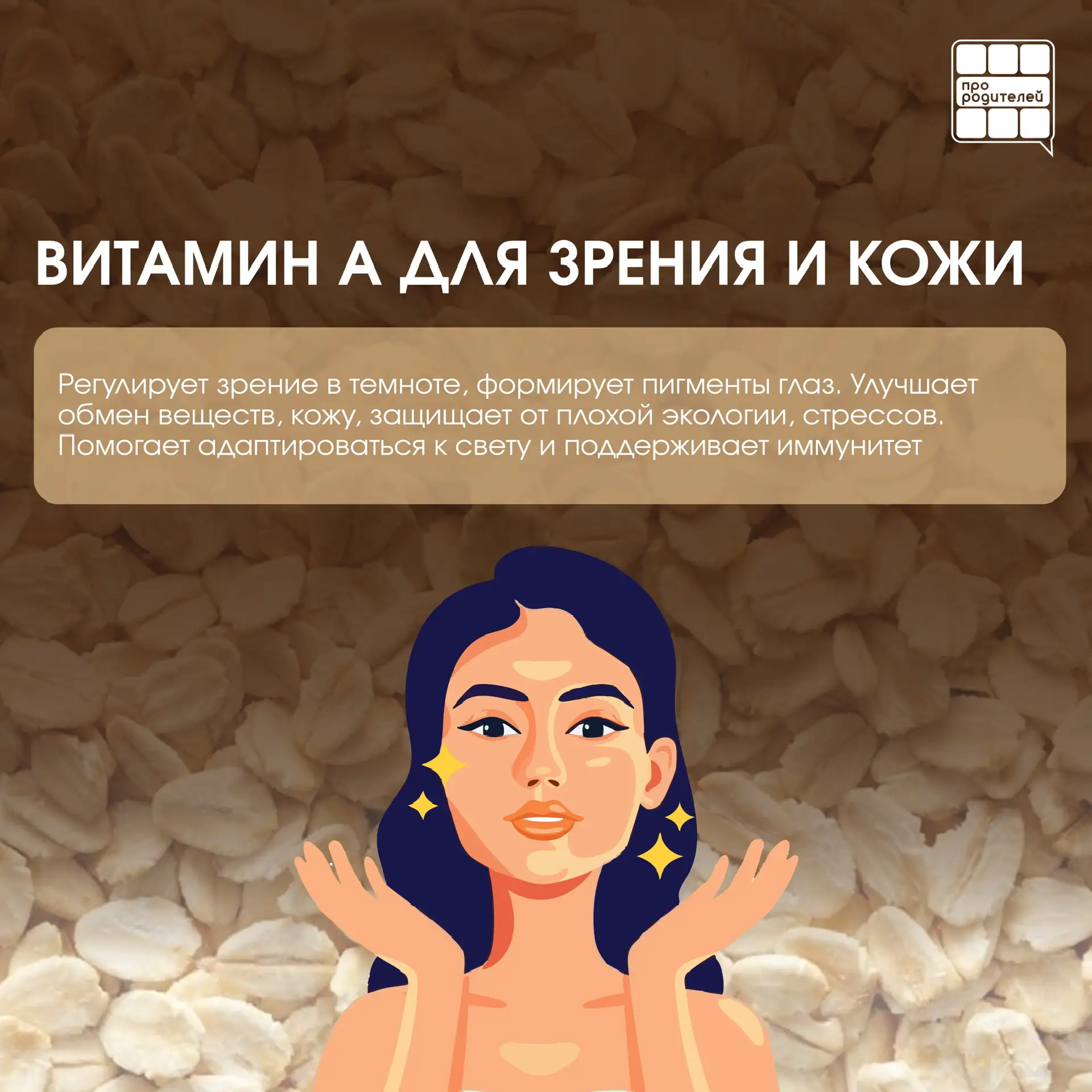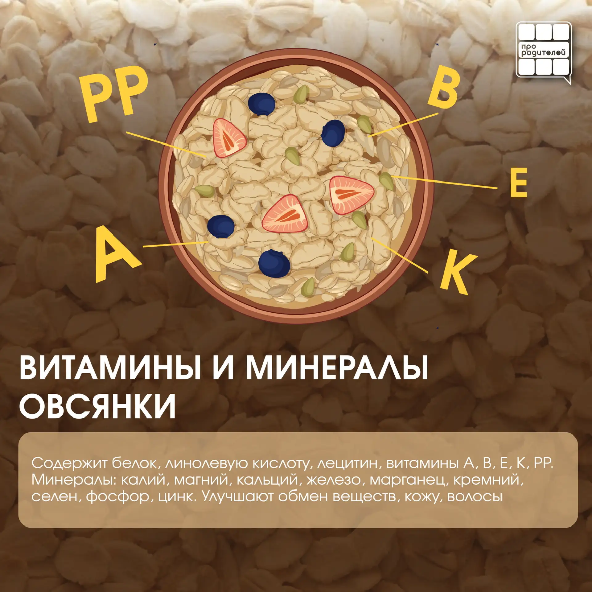 ✨ Мы подготовили для вас информационные карточки — в них вы найдёте, какие именно витамины и минералы содержатся в овсяной каше: от железа до марганца, от магния до провитамина B5.