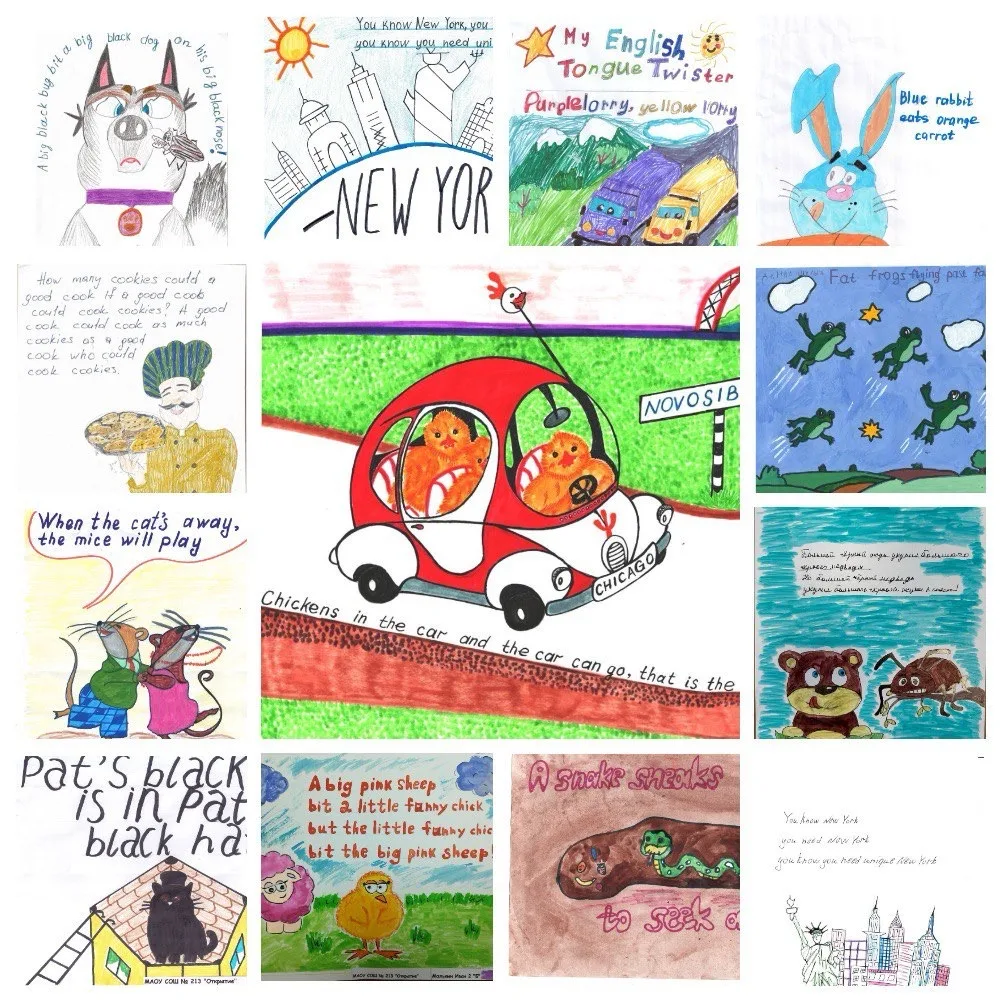 В этом году мы пригласили к участию в марафоне ребят из других школ города. И они с удовольствием присоединились к нашей инициативе. В этот раз, помимо учеников 130ки в онлайн марафоне иллюстраций приняли участие ученики еще 8 школ города Новосибирска. Иллюстрировали разные скороговорки, использовали разные техники. Каждая работа -со своей изюминкой, каждая по-своему хороша и уникальна. И самое главное, каждый участник онлайн марафона иллюстраций ( даже не приехав на конкурс скороговорок) приобщился к миру английского языка, к англоязычной культуре и, мы надеемся, выучил хотя бы одну английскую скороговорку.