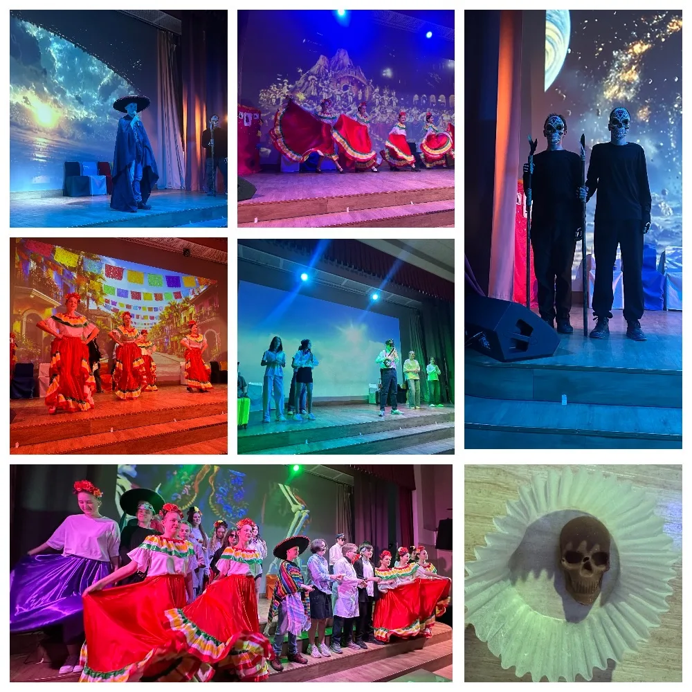 Оригинальный сценарий в стихах по-настоящему покорил зрителей. Ребята были очень артистичны. Необычный сюжет, настоящие мексиканские костюмы, мексиканские угощения, уникальная традиция - праздник День Мертвых.