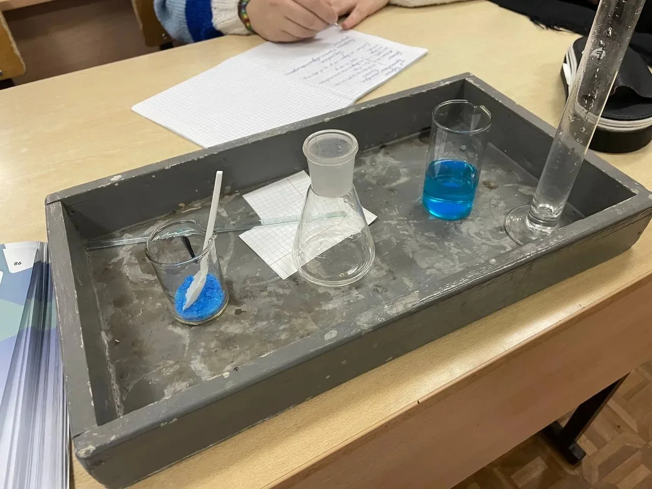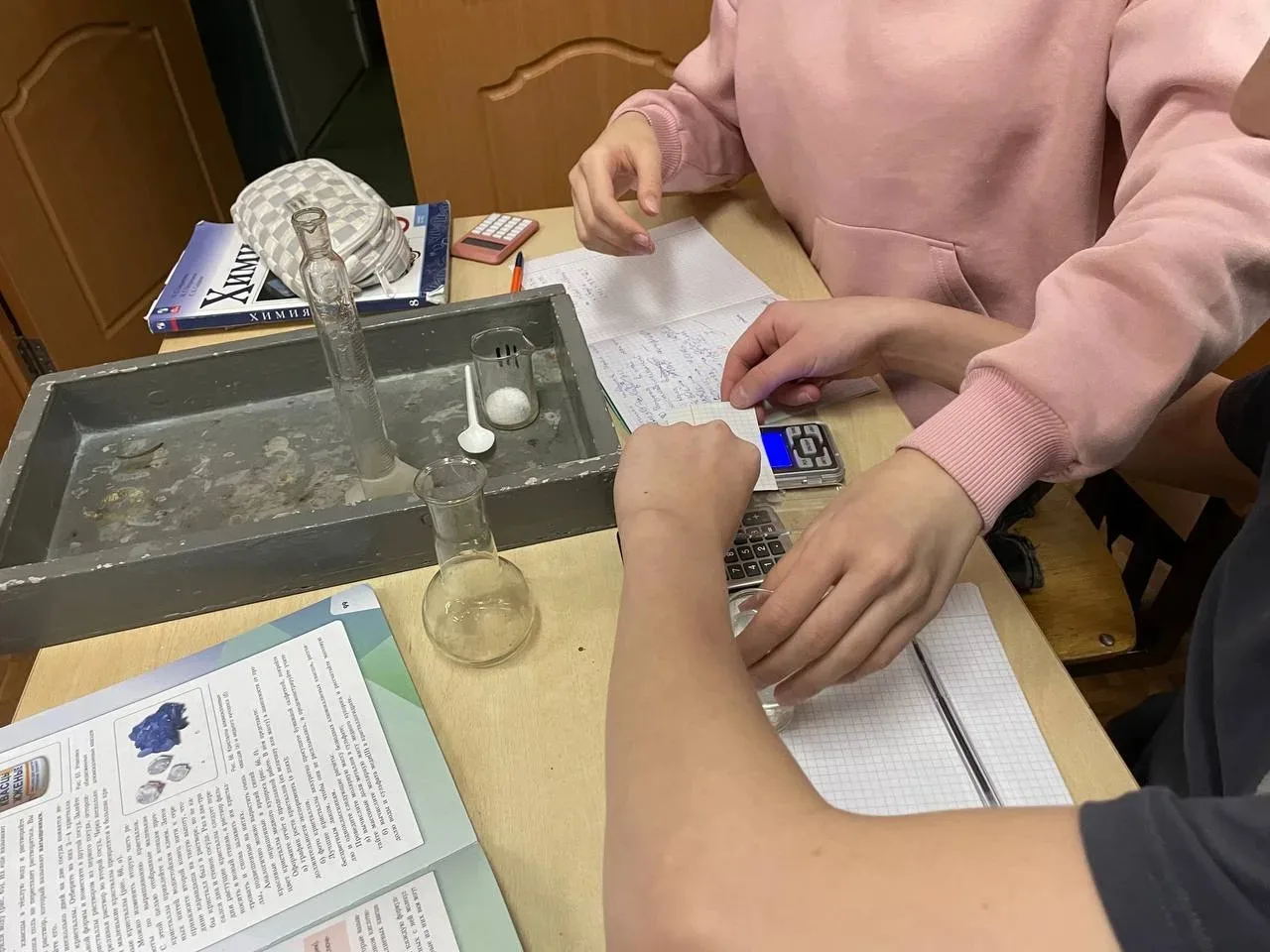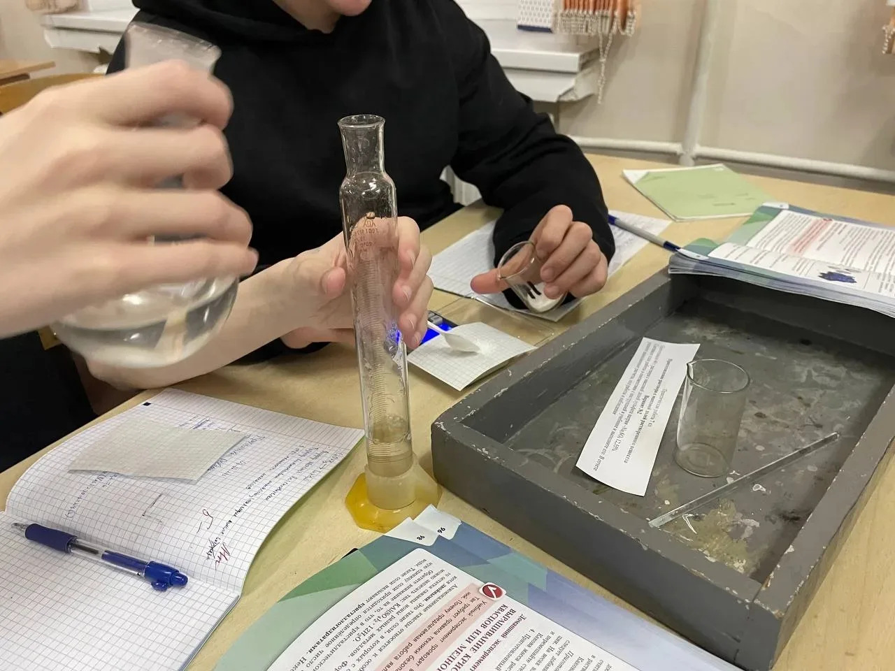Сегодня у 8В класса прошёл урок химии с Плюсниной Ольгой Александровной. На уроке у ребят прошла практическая работа, где они познакомились с новыми для себя веществами и компанентами.