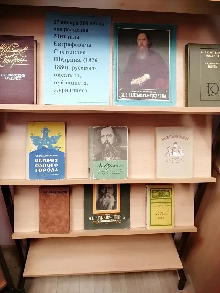 Уважаемые читатели! В библиотеке гимназии действует выставка, посвященная 200-летию русского писателя М.Е.Салтыкова-Щедрина. "Невозможно понять историю России 19века без помощи Щедрина"-писал М.Горький. Книги писателя-сатирика, публициста,журналиста ждут читателей в библиотеке!