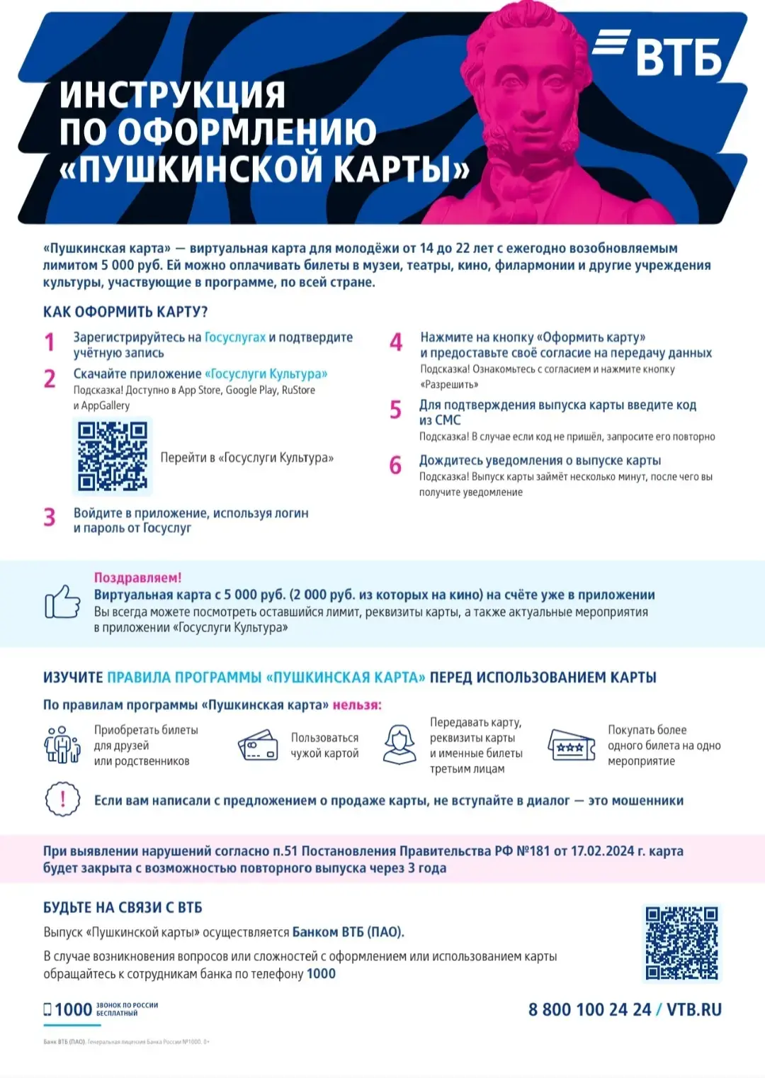 Ребята, оформляйте Пушкинскую карту и посещайте театры, выставки, кинотеатры, музеи бесплатно. Лимит карты на год 5000р.