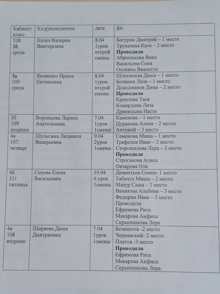 Вахту несли учащиеся 6т, 5л, 7в, 4б классов.