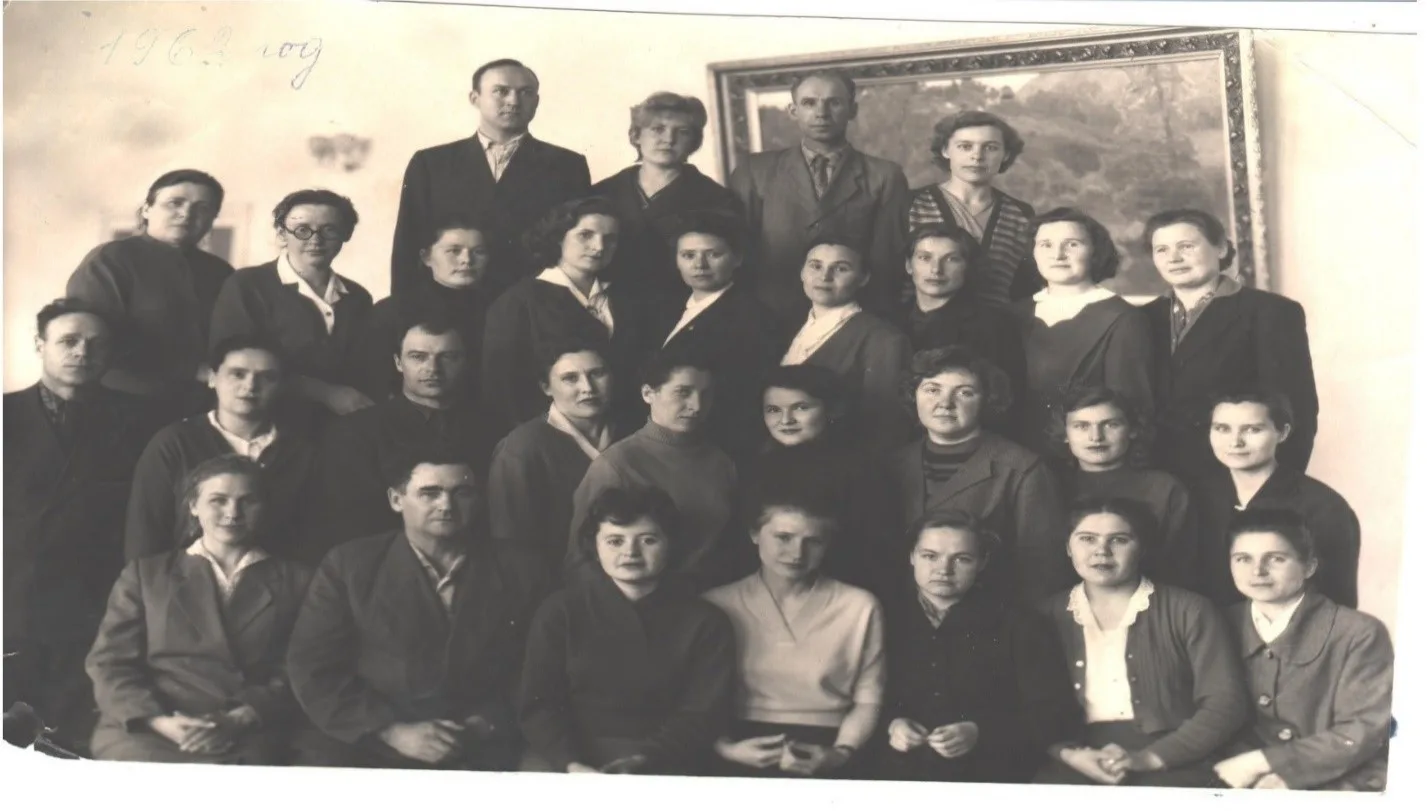 На фото первый директор , Архипов Иван Васильевич со своим учительским коллективом - нижний ряд , слева второй.
