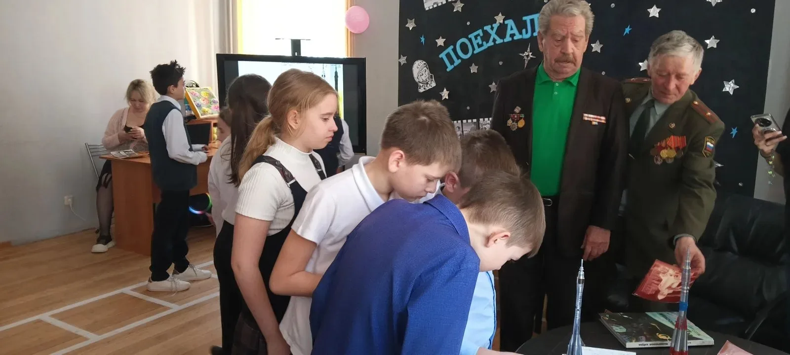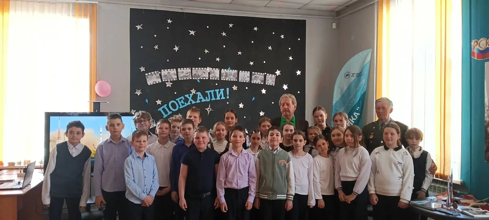 В рамках недели космонавтики, 9 апреля ученики 4"Б" класса, (кл. рук. Сизова Елена Васильевна ), были на встрече в клубе "Чайка" с офицерами в запасе - Александром Ивановичем Каневым и Швед Валерием Лаврентьевичом, которые служили и работали в прошлом веке на космодроме Байконур. Бывшие офицеры не просто читали лекцию — они открыли душу. В их рассказах ожили легендарные старты, быт на «площадке» и те самые космические традиции, о которых не пишут в учебниках.