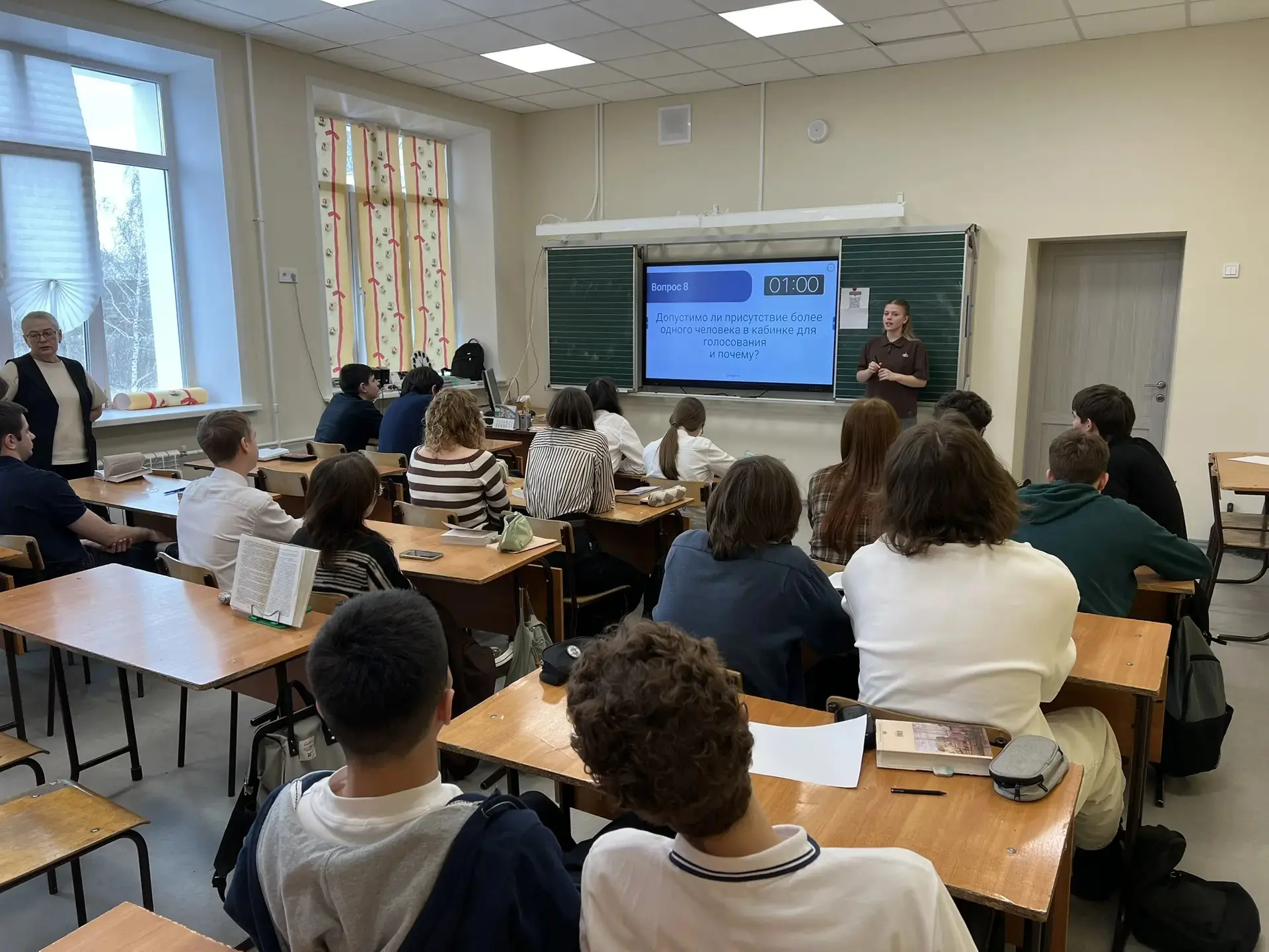 ✅️ 19.03.2026г. Молодёжная избирательная комиссия при Территориальной избирательной комиссии Первомайского района провела квиз «Правовая прокачка» и анкетирование на тему избирательного права для старшеклассников.