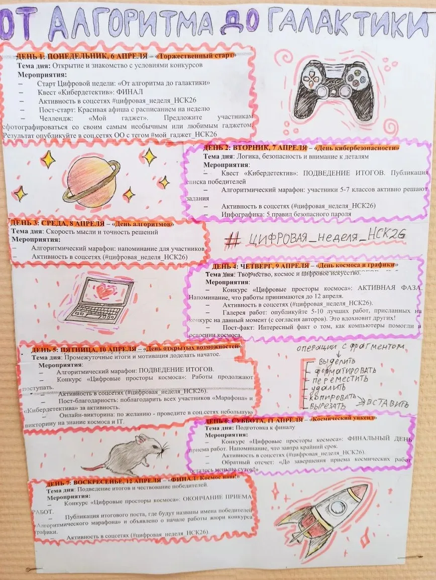💻С 6 по 12 апреля 2026 года в лицее пройдёт цифровая неделя "От алгоритма до Галактики" в рамках проведения городской предметной недели информатики.