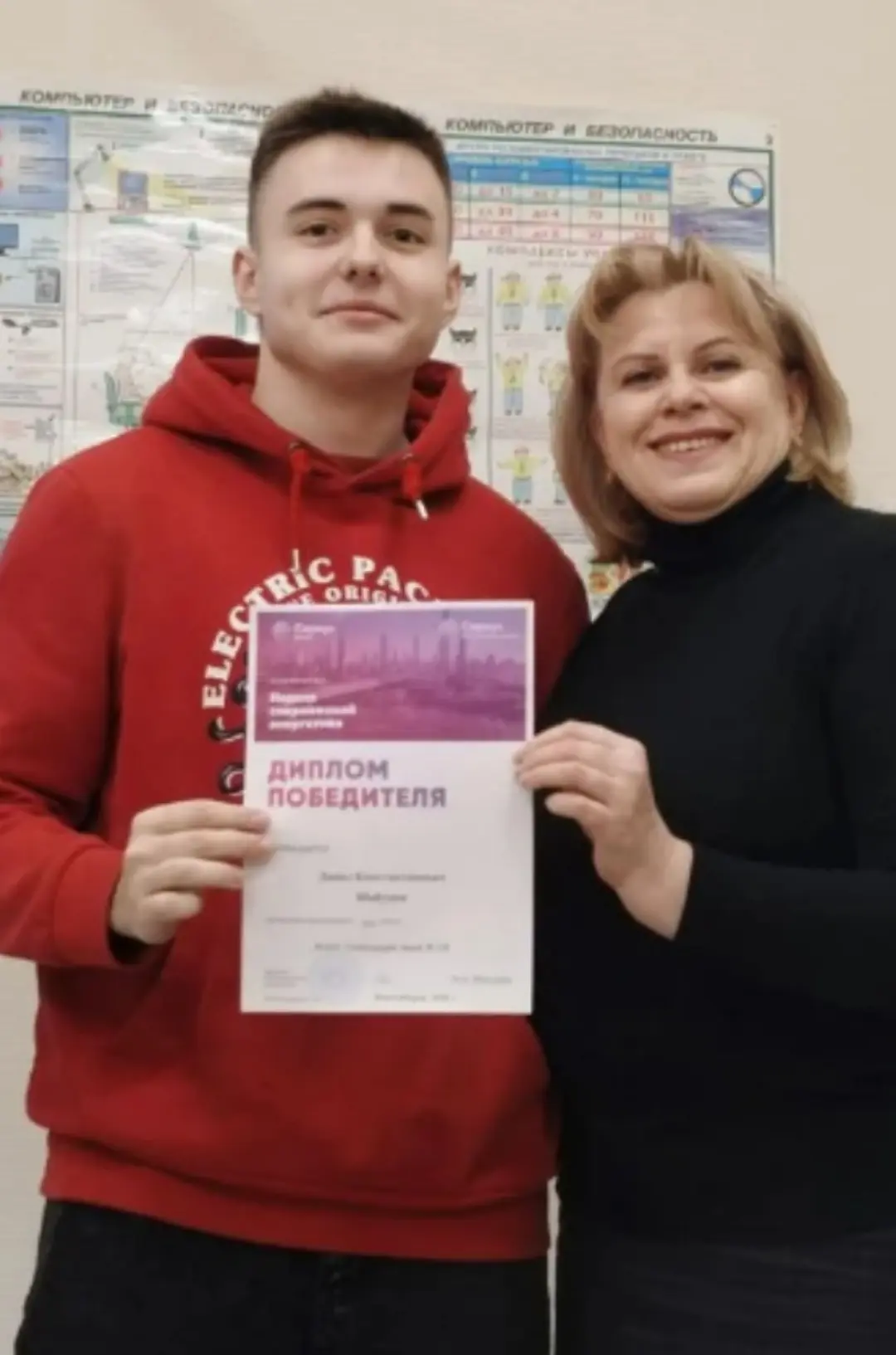 Шабунина Данила, ставшего лауреатом муниципального этапа городской открытой научно-практической конференции Новосибирского научного общества учащихся "Сибирь" по русскому языку (руководитель Теплова Галина Александровна).