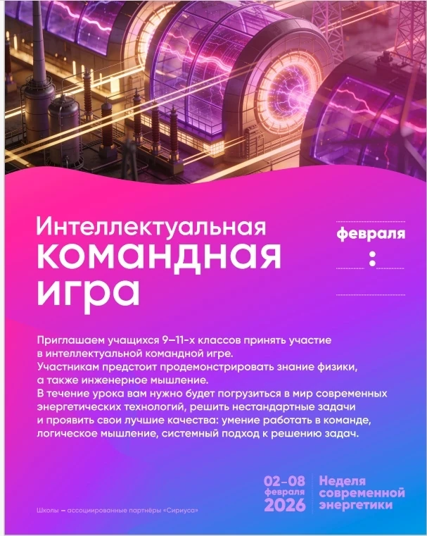 4 февраля 🔸 Квиз для команд 6-8 классов "Энергия вокруг нас".