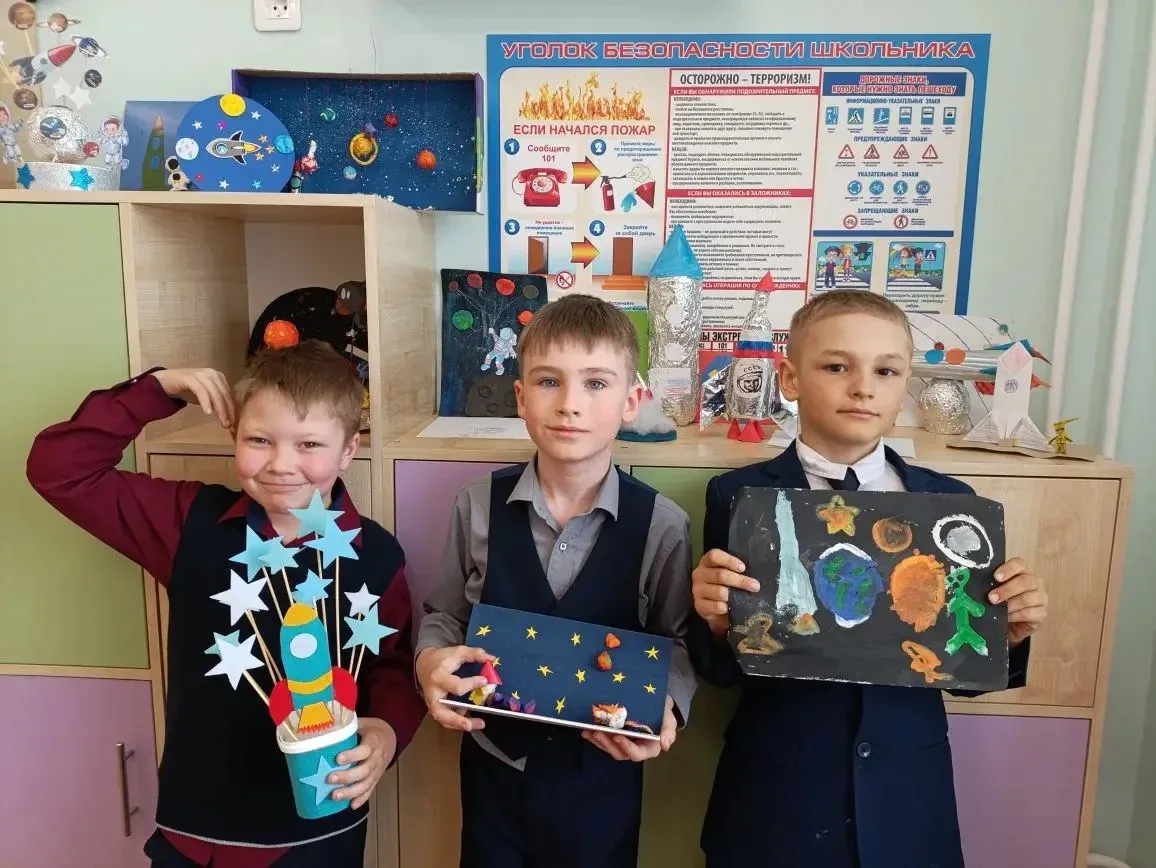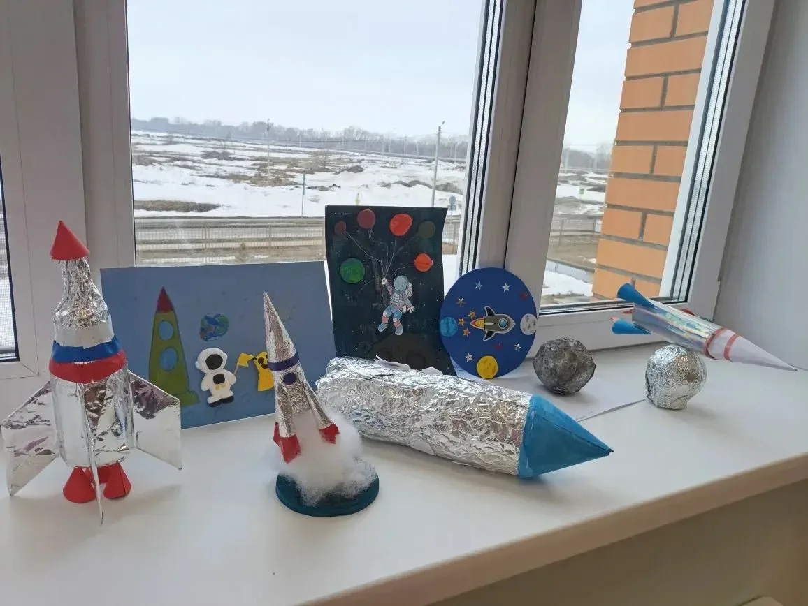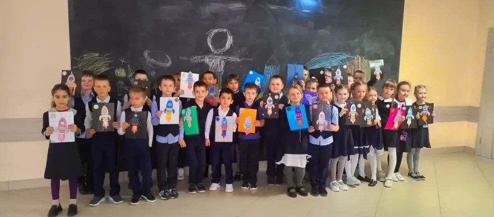 В завершение занятия первоклассники проявили свои творческие способности и изготовили поделки — ракеты в открытом космосе, которые могут «взлетать».