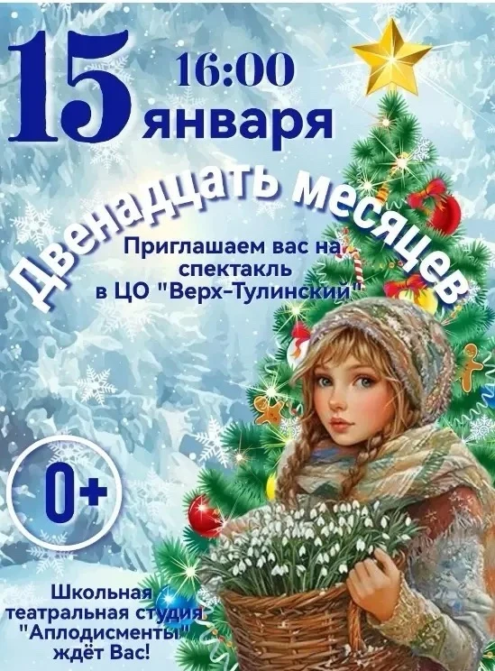 Завтра, 15 января, в 16.00 Центр образования «Верх-Тулинский» приглашает односельчан на спектакль «Двенадцать месяцев»🌙