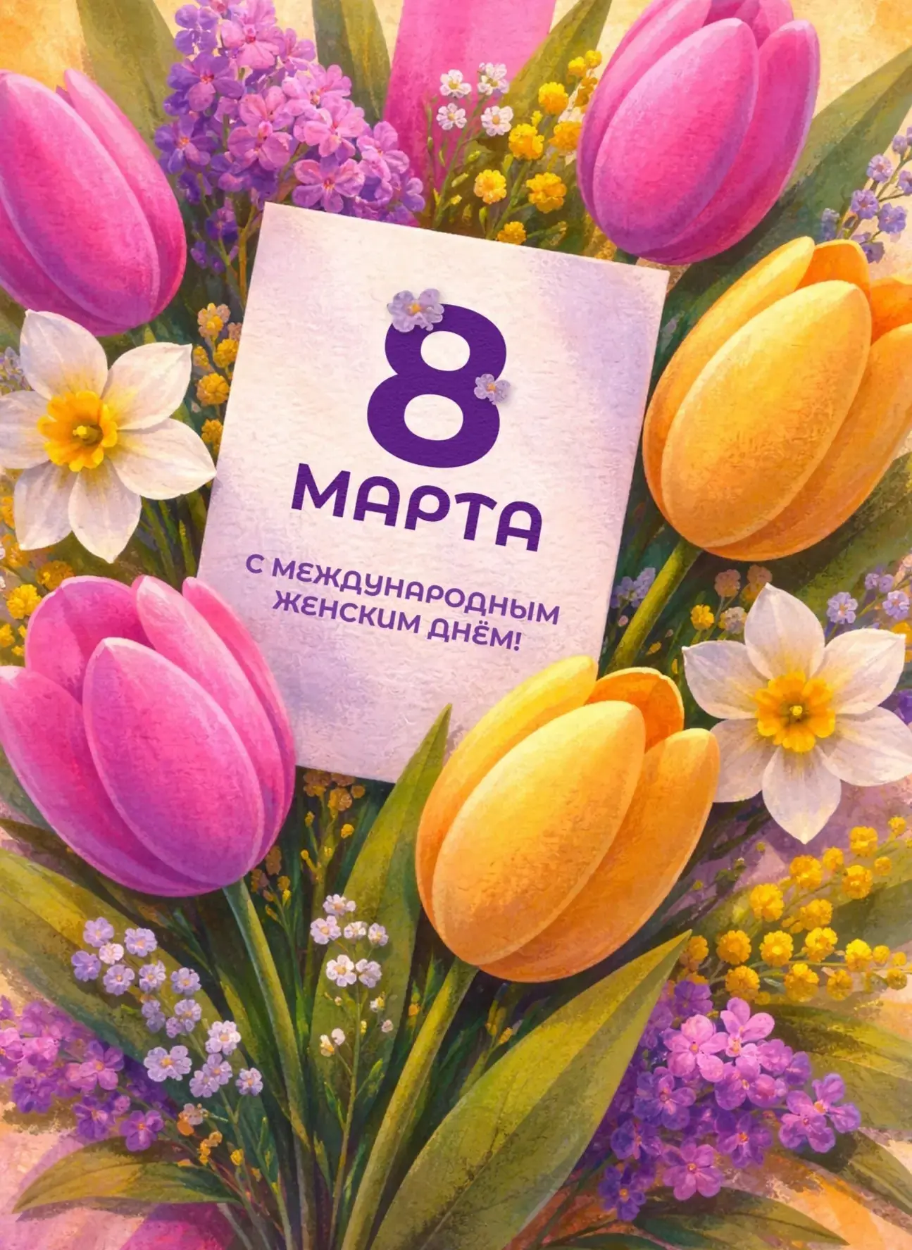 В этот прекрасный весенний праздник желаем Вам счастья, здоровья, любви и радости. Пусть каждый день будет наполнен приятными событиями и радостными моментами💐🌹🌺