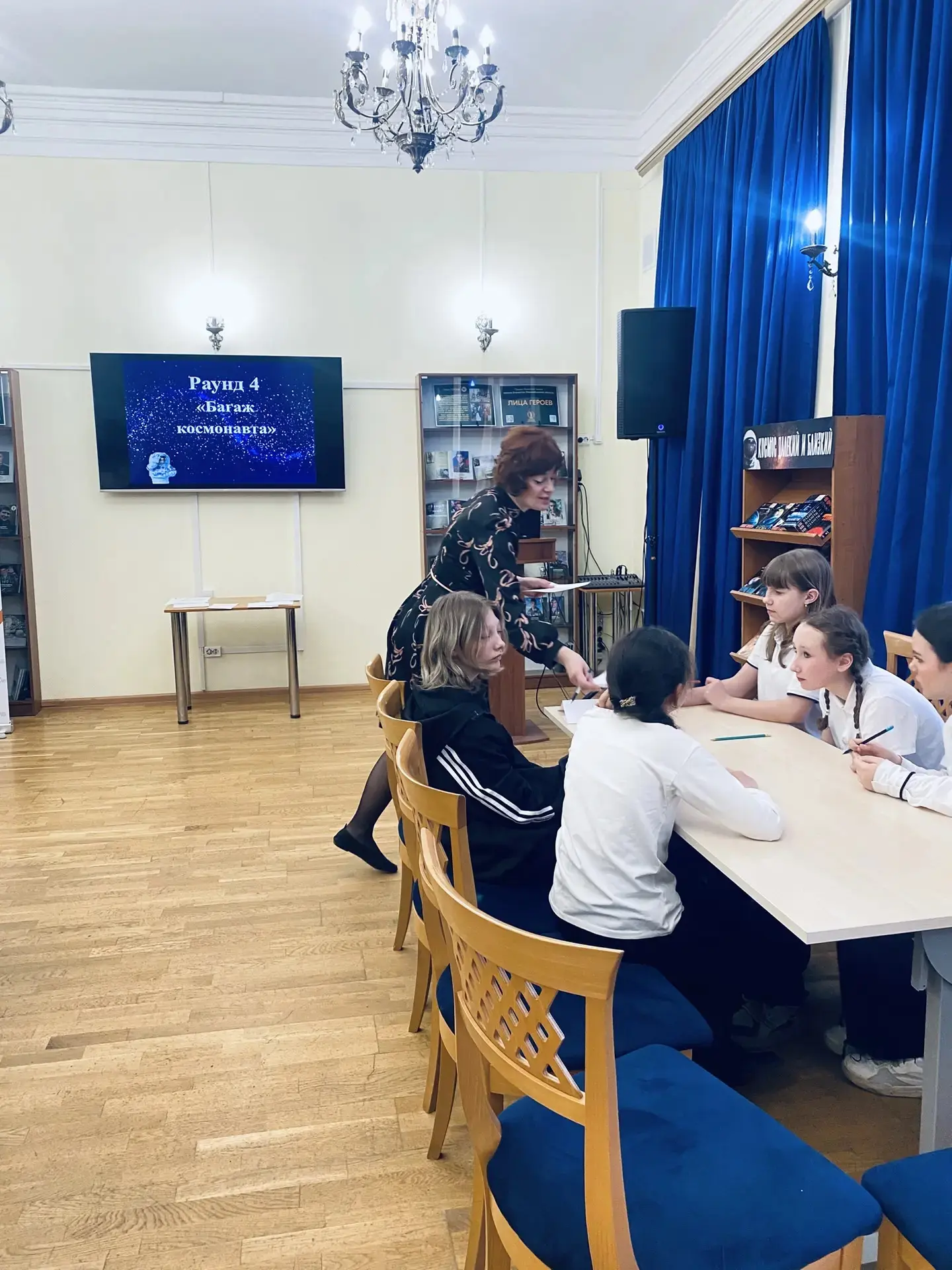 После игры для школьников провели экскурсию по библиотеке, показали эксклюзивные книги, послушали пластинки, поиграли в развлекательные настольные игры.