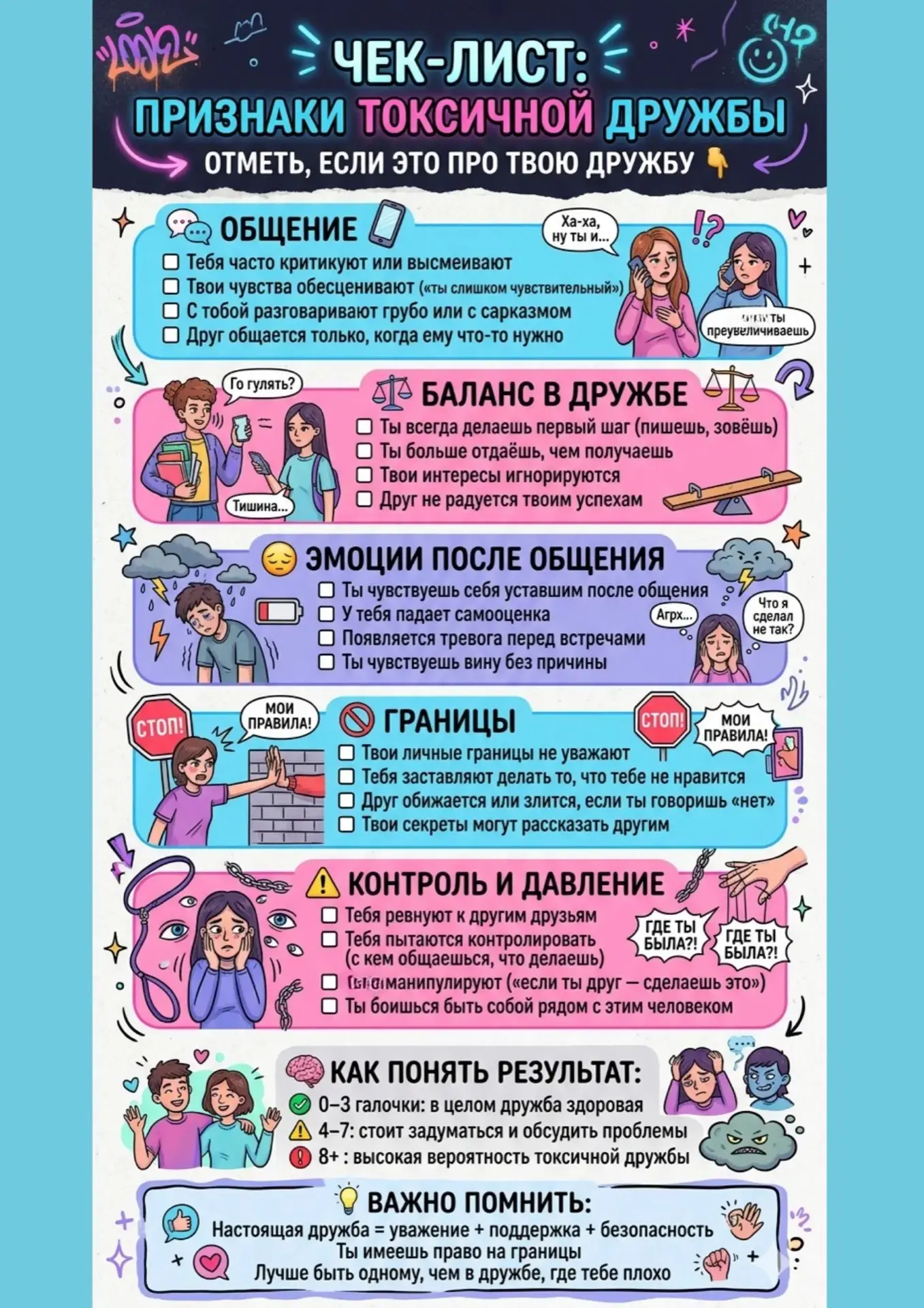 8+ галочек — высокая вероятность токсичной дружбы🚨