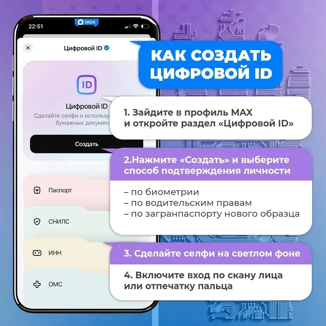 Как подключить сервис и какие возможности он даёт, смотрите в карточках. Подробная инструкция также доступна по ссылке: go.max.ru/digitalId