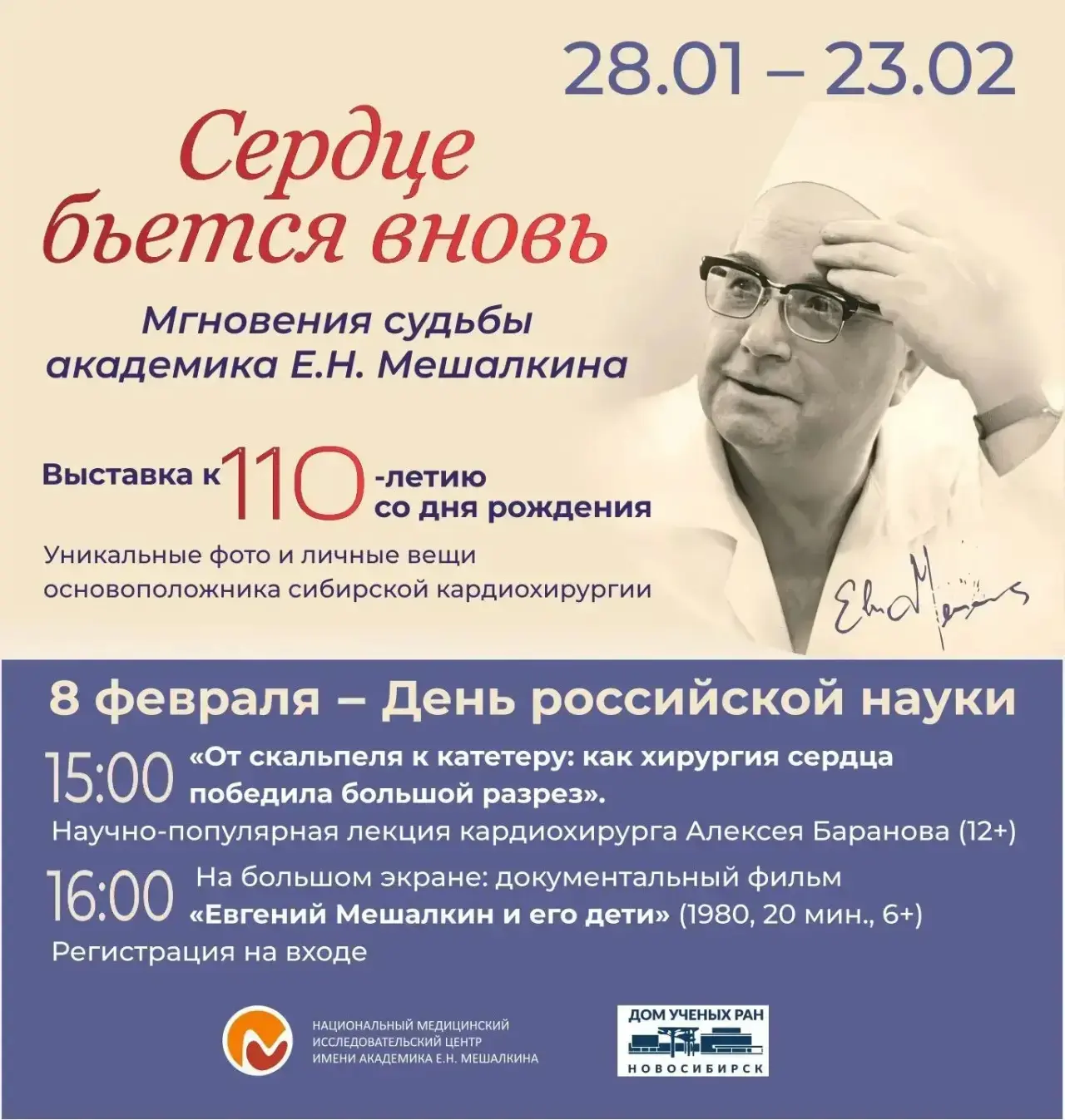 ⚡️в 14:00 - презентация выставки «Сердце бьется вновь». Возможность прогуляться по ней вместе с учениками Мешалкина и ветеранами работы в созданном им институте;