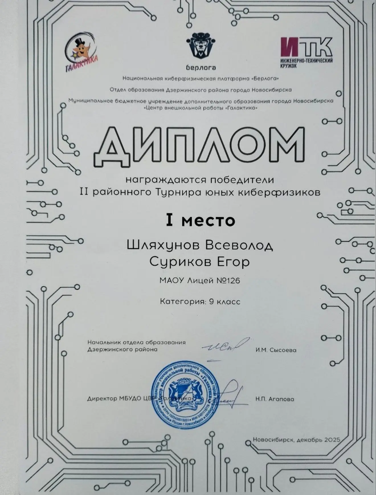 Завершился II районный Турнур юных киберфизиков. Сразу две команды Лицея 126 заняли призовые места. Команда 8 класса, в составе Аболымовой Алисы и Костенковой Алины заняли почетное III место и команда 9 класса в составе Сурикова Егора и Шляхунова Всеволода стали победителями. В течении двух недель они участвовали в отборочном этапе, посещали мастер-классы и в финальном этапе показали такой замечательный результат!Поздравляем ребят с заслуженными наградами.