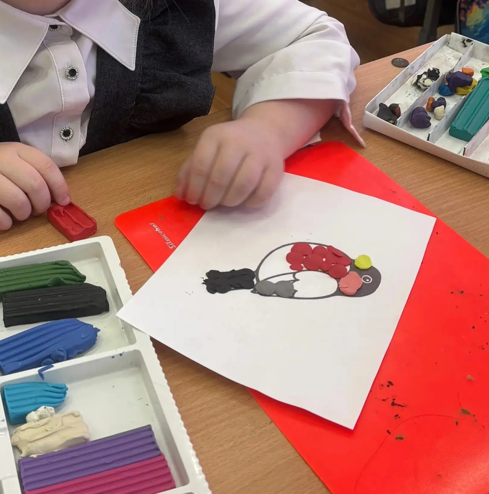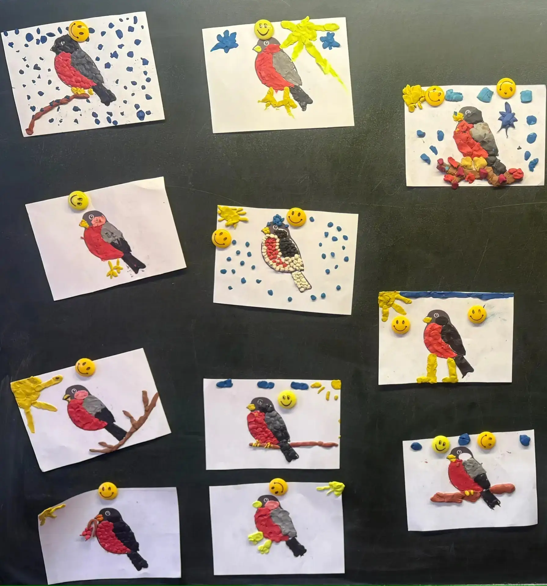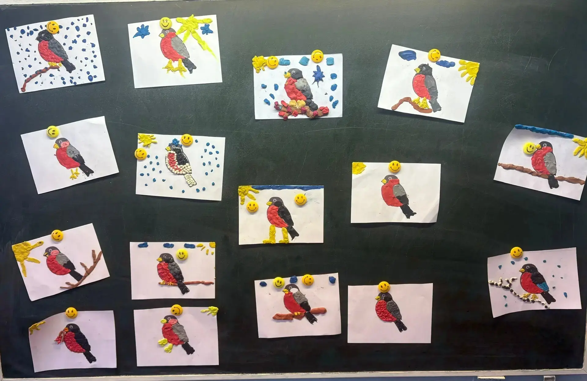 Сегодня на уроке труда наши первоклашки создавали свою зимнюю сказку. С большим старанием и фантазией они лепили ярких снегирей из пластилина! Самый кропотливый момент — та самая алая грудка, которая делает птичку узнаваемой.