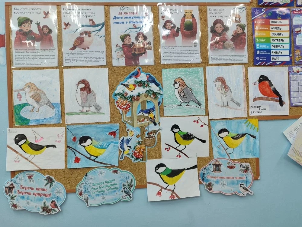 - Оформили яркий и познавательный стенд, рассказывающий о важности заботы о зимующих птицах.