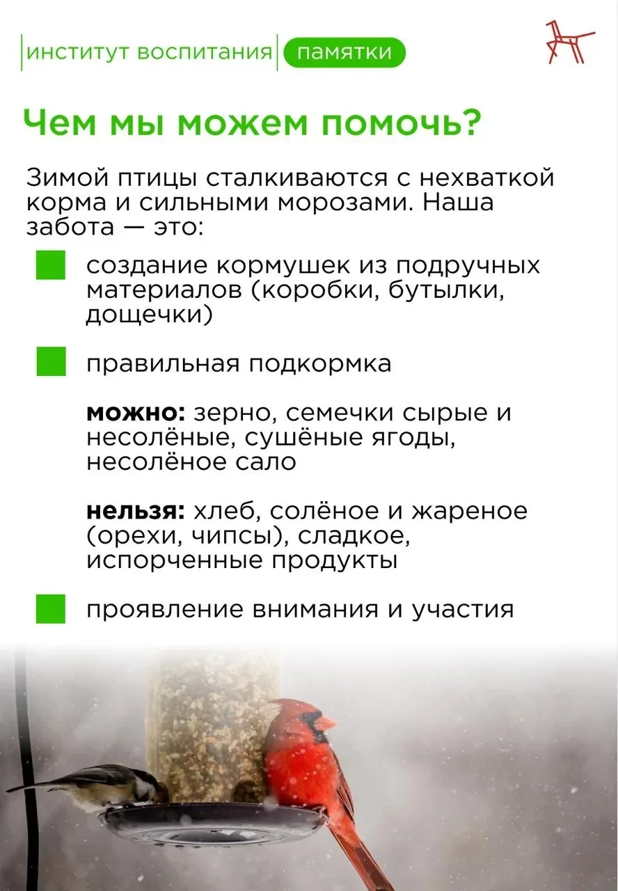 Спасибо всем ребятам за участие и неравнодушие! Пусть добрые дела согревают наших маленьких крылатых друзей даже в самые морозные дни! 🐦❄️💚
