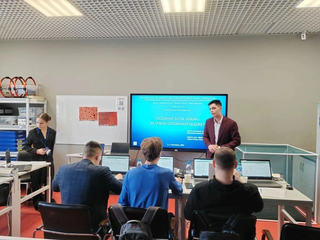 Честь нашей школы защищали Карачёв Вячеслав, 10 «А» класс (тема «Интерактивный тест струпа: запутанный светофор», наставник – Дубникова Н.Н.) и Сагателян Армен, 9 «Б» класс (тема «Создание БПЛА «ВЖИК» за очень скромный бюджет», наставник – Кирин Р.Н.)