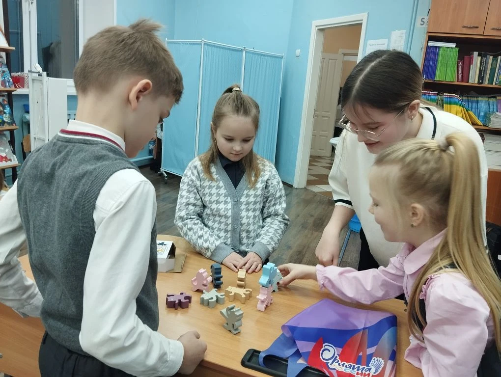 Каждую перемену Лиза для ребят готовит интересные игры. Сегодня играли в настольные игры, развивающие внимание и координацию движений.