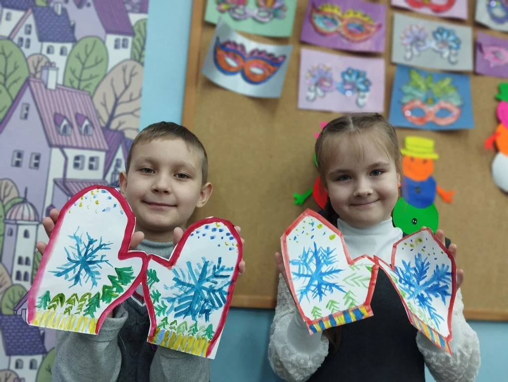 Во время урока рисования ребята вдохновились красотой зимней природы и создали настоящие шедевры. Первоклассники внимательно рассматривали снежинки и елочки во время прогулки, а потом перенесли увиденное на бумагу.