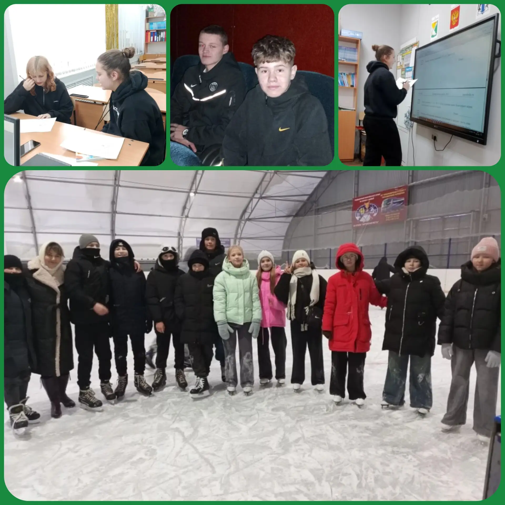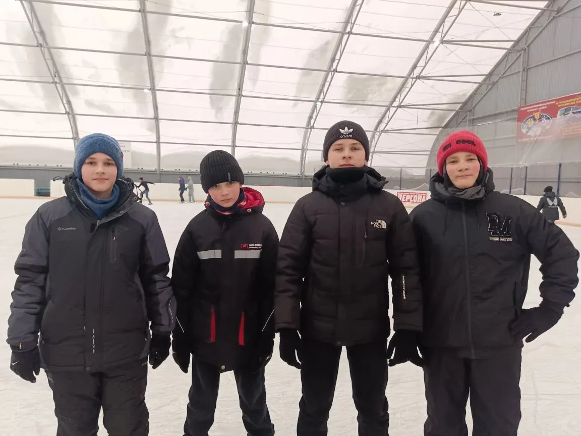 А учащиеся 8в, 7в и 6б классов ловко скользят по льду на катке 🧗🏼❄️ Отличная погода для активного отдыха!