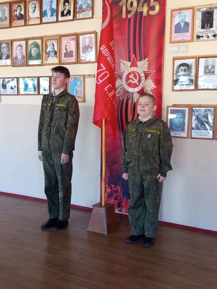 🕊Ученики с честью стояли в почётном карауле у копии Знамени Победы, отдавая дань глубокого уважения героям Великой Отечественной войны. Каждый участник осознавал всю важность своей миссии и с гордостью нёс ответственность за сохранение памяти о тех, кто сражался за нашу свободу.