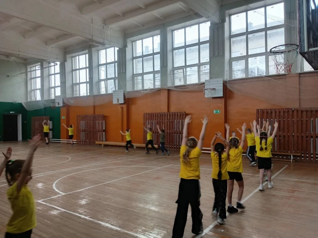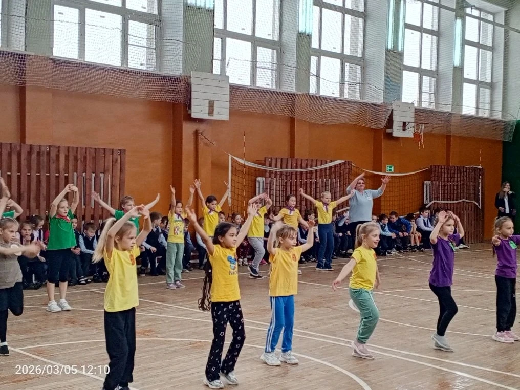 Анастасия Леонидовна, учитель физической культуры, совместно с ребятами начальной школы начала утро с энергичной зарядки, которая зарядила всех позитивом и настроила на активный лад. Затем ребята с азартом участвовали в весёлых эстафетах, где проявили ловкость, скорость и командный дух.